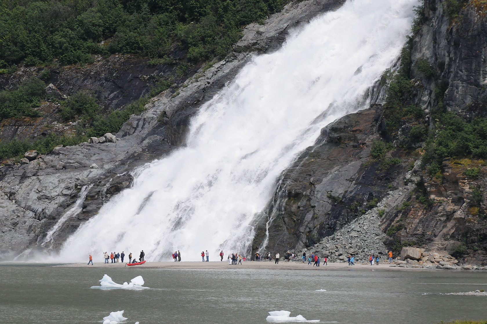 While in Juneau, a visit to the Mendenhall Glacier is a well-publicized outing. The glacier is quite accessible and scenic, and buses take hundreds of visitors daily from the port to the glacier. Less well-known is that a routine city bus does the route every hour and tickets for that bus cost a small fraction of the Mendenhall tours. We took the local bus, and once at the Forest Service visitor center at the glacier, we continued to walk on some of the national forest trails in the area. Quite literally, we took the path less traveled, as there were almost no people on our trail through the woods, while almost everyone went to a large waterfall, or returned to town after a short while.