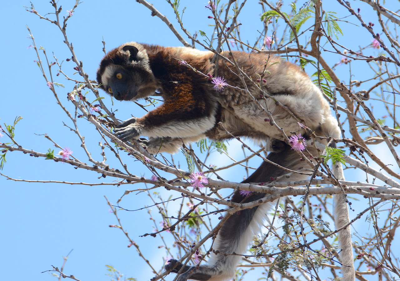 Next to the main road, as we were starting our walk, we spotted Verreaux Sifakas eating flower buds in the trees. See more about these lemurs here.