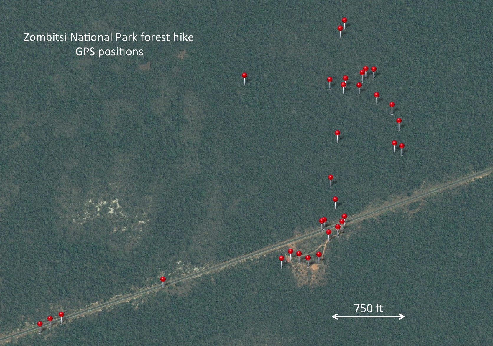 By noontime we had arrived at Zombitse National Park, an area with short dry forest, which turned out to be a nice place for a walk. We had our lunch at a picnic area while enjoying the resident Giant Coua parading around the picnic tables. After lunch our tour operator hired a local guide at the park headquarters and we started our guided tour.