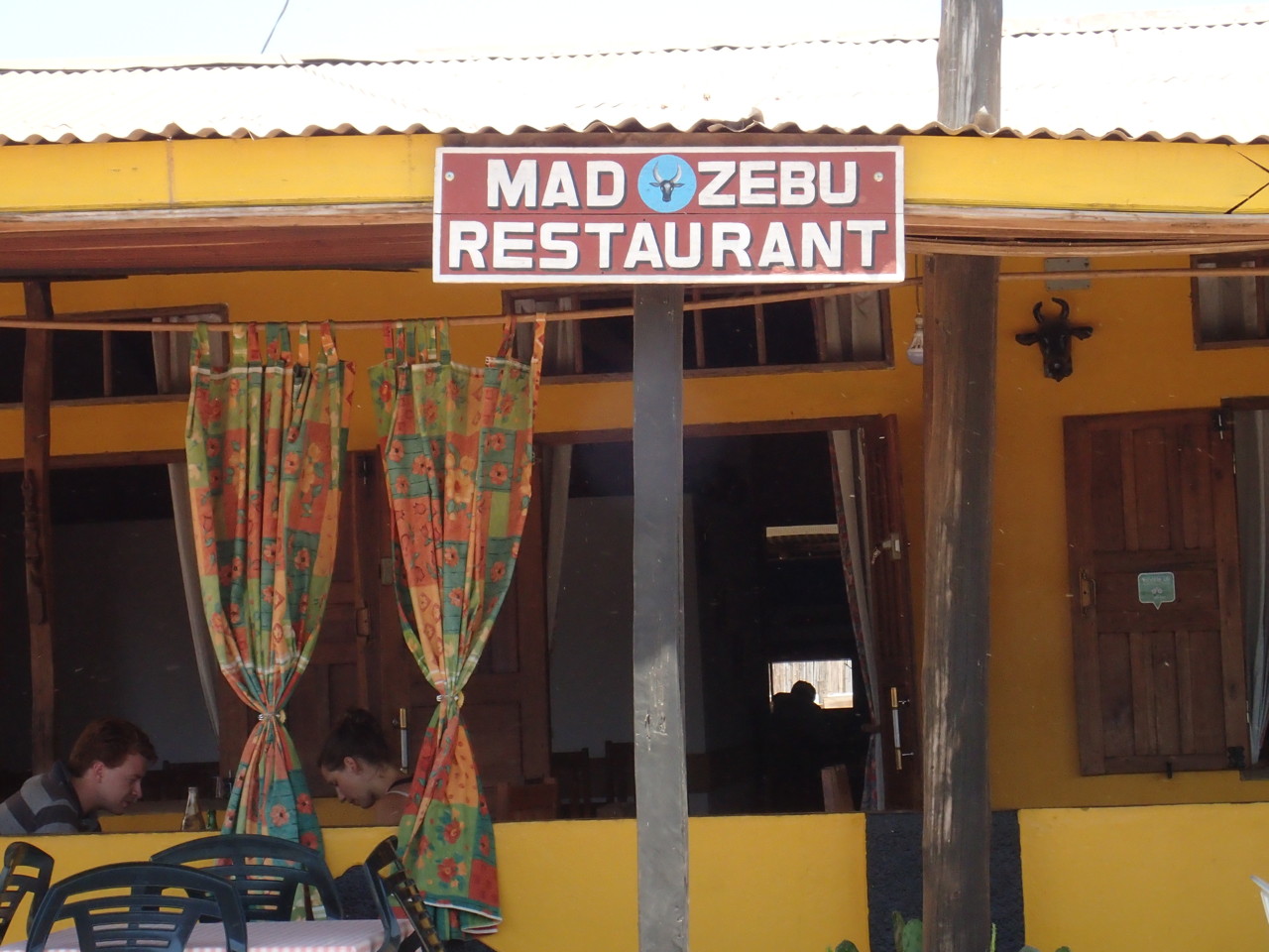 At the largest town on the route, Belo Tsiribihina, we enjoyed a very good lunch at a restaurant called Mad Zebu (Zebu are cattle in Madagascar and other tropical areas with a large hump – Brahman cattle).