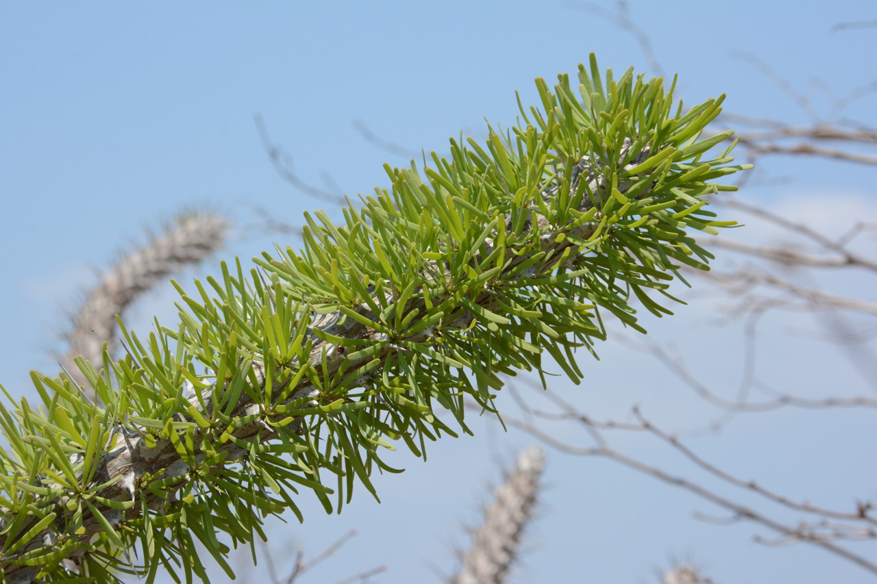 10.13 Closer view of a stem of Didierea madagascariensis. The spines are nasty – and almost hidden by the leaves here.