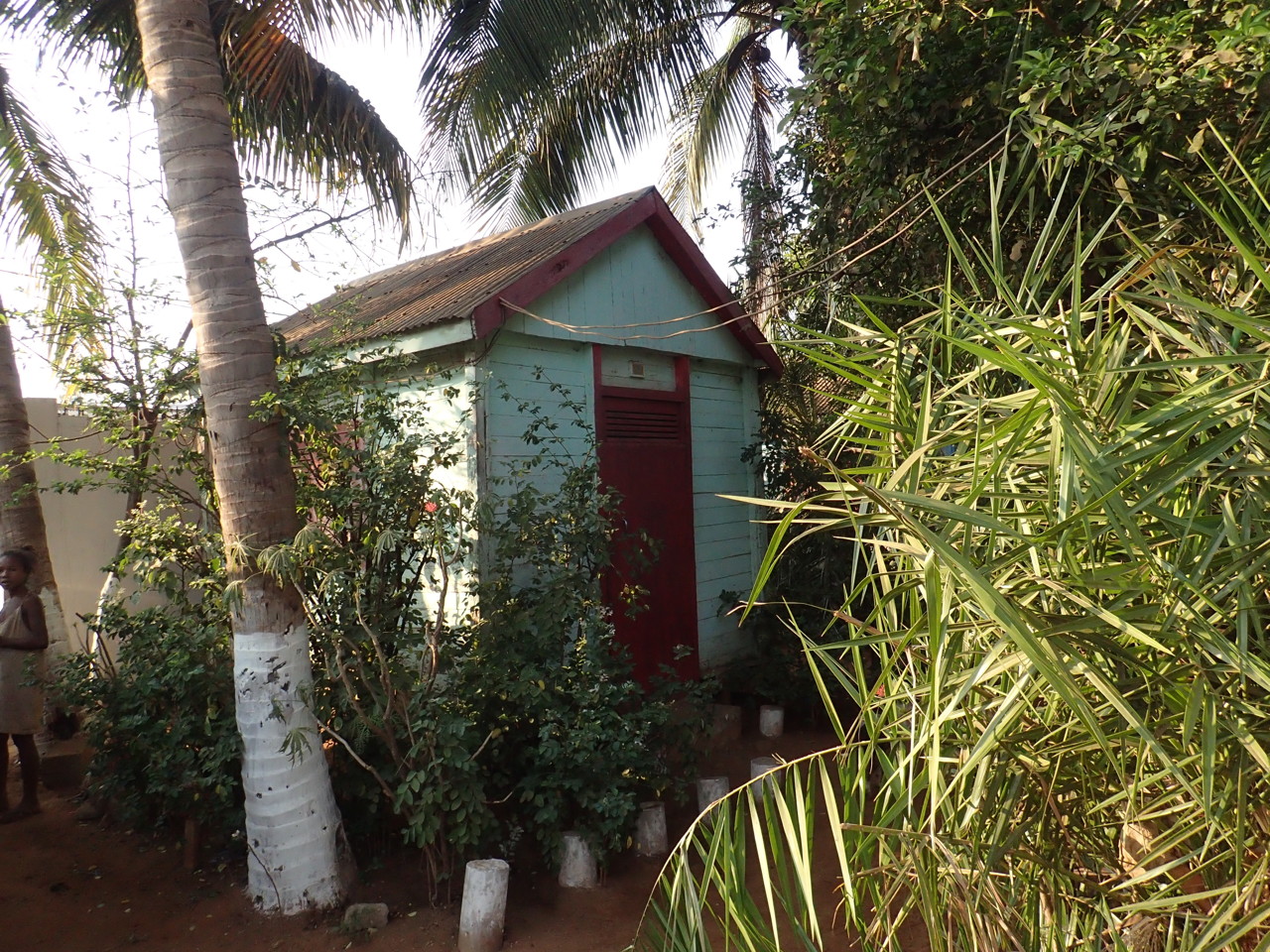 The hotel consisted, with exception of a more modern section above the bar, of tiny huts with the proverbial one light bulb to illuminate the whole room. As soon as we went into our tiny hut/room I noticed the lack of screens on the windows, the lack of fans, and the need to keep the windows closed. Not just because of possible mosquitoes, but because this was a busy place and people were circulating and walking right past our window – so it had to be closed.