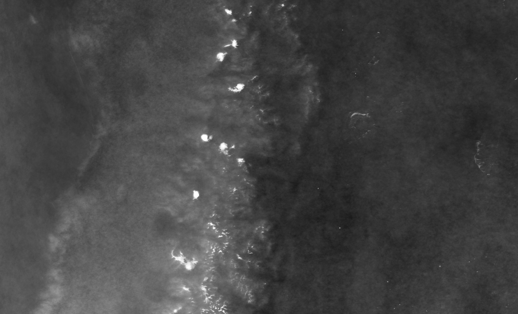 160 threshold Same as image about except with 160 as cloud detection threshold. Most bright land artifacts over Argentina are eliminated with this threshold.