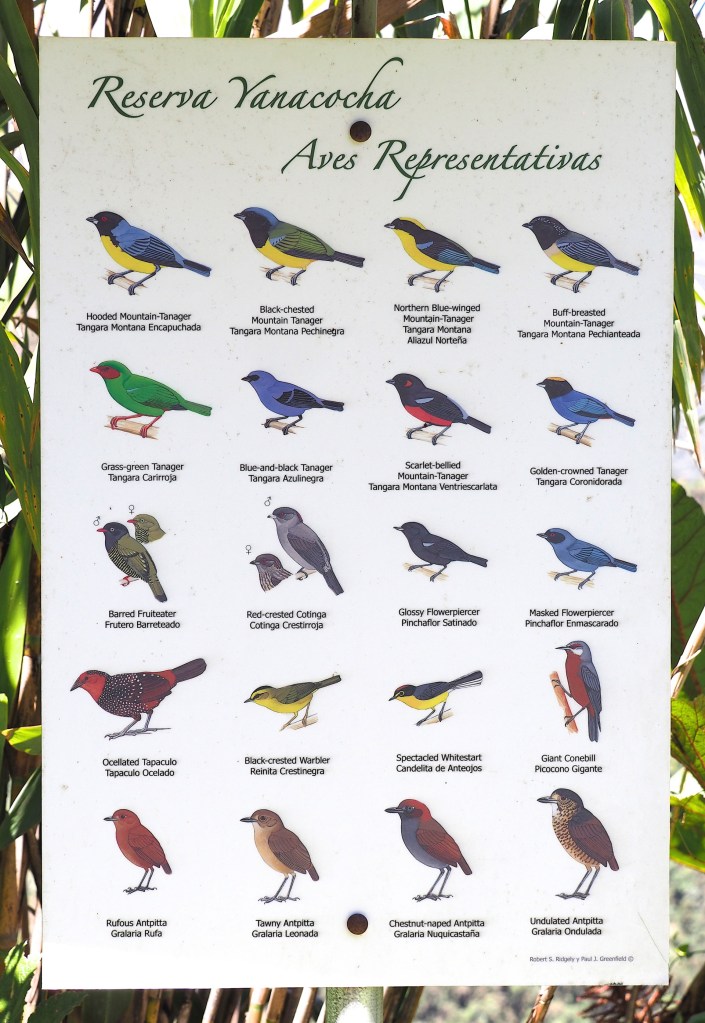 More information needed… and volunteered. Some lodges did not provide enough information at the outset (like a normal hotel that has a book in each room that contains all of the information a guest might like to know). For example, a summary of the trails, eating times, bird lists, what is for dinner etc. Little to no information was available on the uniqueness of the lodge environment, the uniqueness of the habitat, and virtually nothing about the plants. No mention of the palms, epiphytes, differences between the cloud forest and lowland forests etc. Perhaps most visitors come with guides that provide this information (we doubt this) or the focus of most visitors is strictly on birds and little else (unfortunately this may be closer to the truth). In our experience a great many people would appreciate knowing more about the different epiphytes, the altitudinal zonation of the birds or palms, or what distinguishes a cloud forest from the Amazonian lowland forest. Or the cloud forests on the western slopes – how are they different from the eastern slope cloud forests? So much knowledge could be conveyed to the visitors! Our discussions with various guides suggested that this level of knowledge simply isn’t taught to the guides, or that those who have this level of knowledge aren’t motivated to convey it to visitors. Perhaps it is partly the visitor’s fault for not asking about anything other than birds!