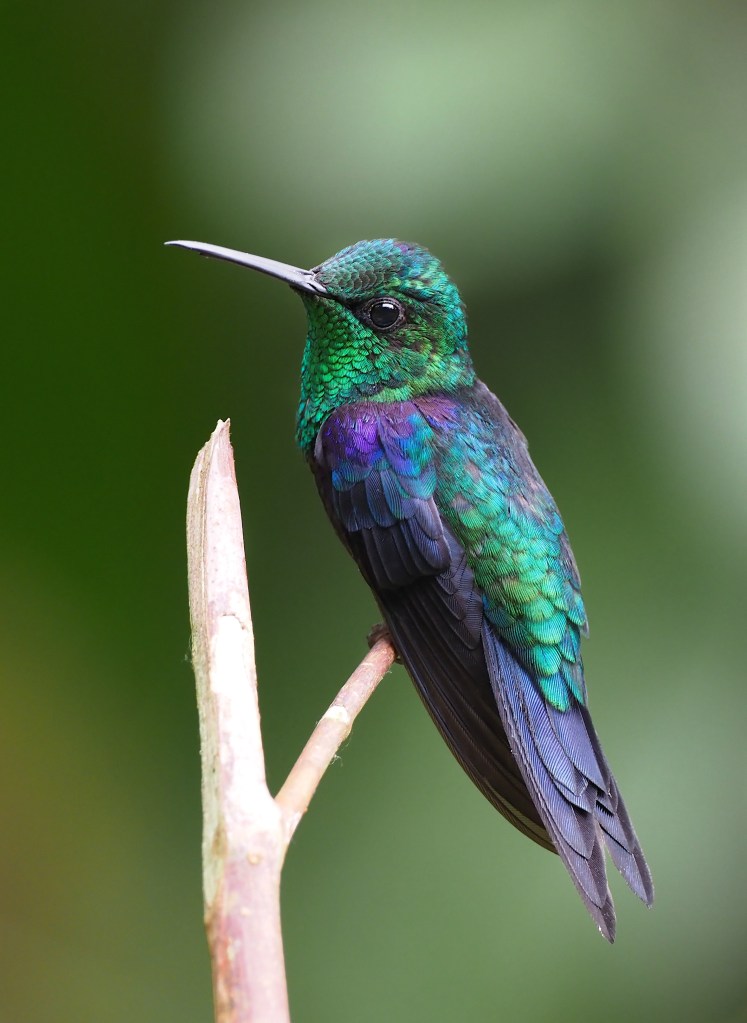 Fig. 6. While it is easy to criticize birding lodges for their “unnatural” feeding environments by which they attract birds, it does make these birds very convenient for photography. The challenge for the photographer is getting photos that look “natural” – no feeders in the photos and no artificial backgrounds. Here is a sampling of hummingbird images obtained from different lodges. All photos are crops of the original images; some are with flash and others are using natural light.