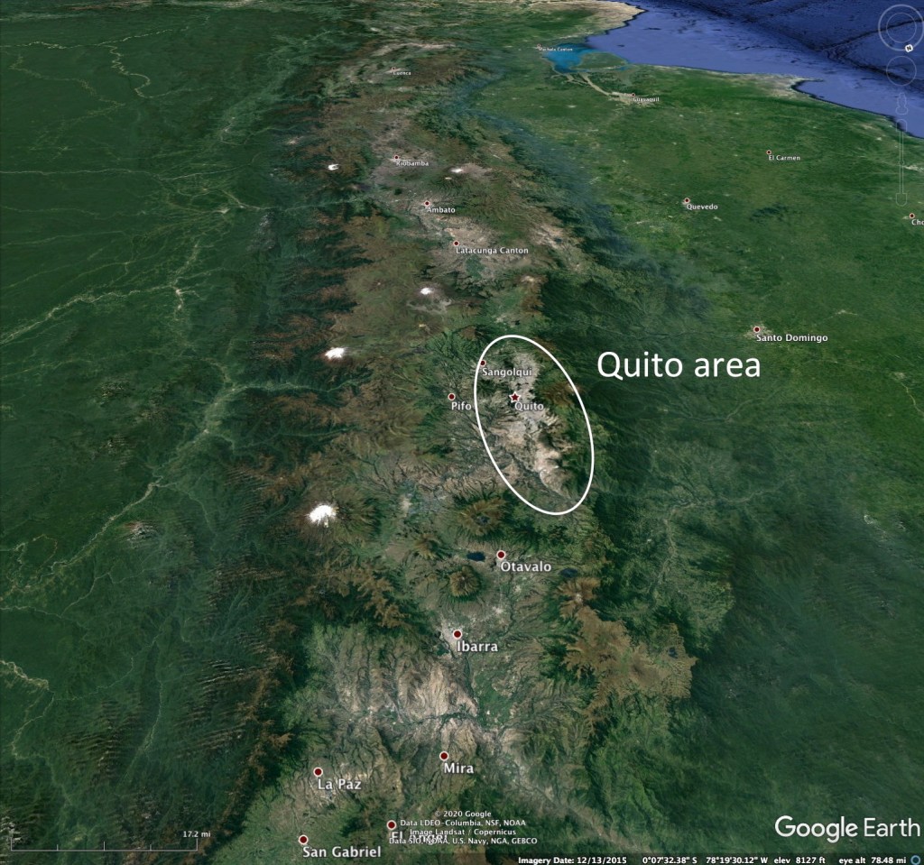 We are not experts on the nature and natural history of Ecuador, but we have traveled there on work several decades ago and have rented vehicles and driven across parts of the country both in the distant past and very recently (2019). A summary of Ecuador’s climatology was prepared for the 2019 Conference participants as well as a talk. Here we will summarize quickly the essential climatic and geographical aspects of Ecuador.