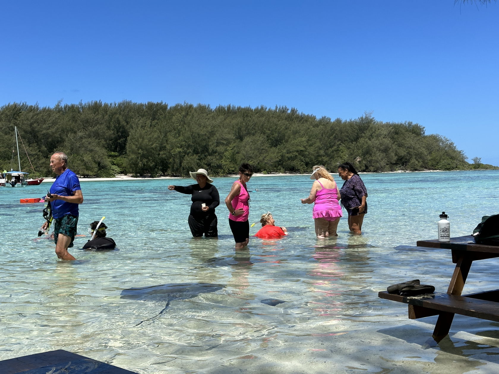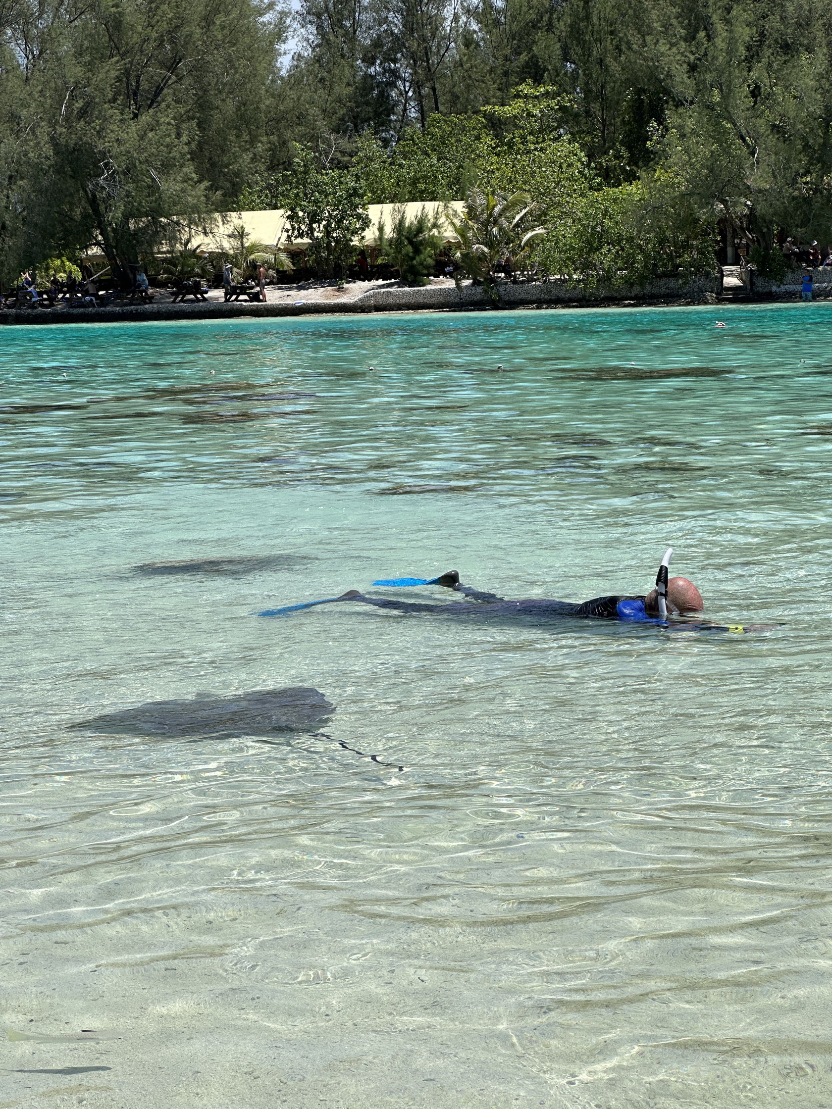 We discovered, after we arrived and waded ashore, that they feed bread crumbs to the rays that are numerous at the site. We didn’t like this since the rays are large and have sharp stingers (that no one mentioned) and the food also drew in some Black-tipped reef sharks. Small, but…anything with a mouth can bite…