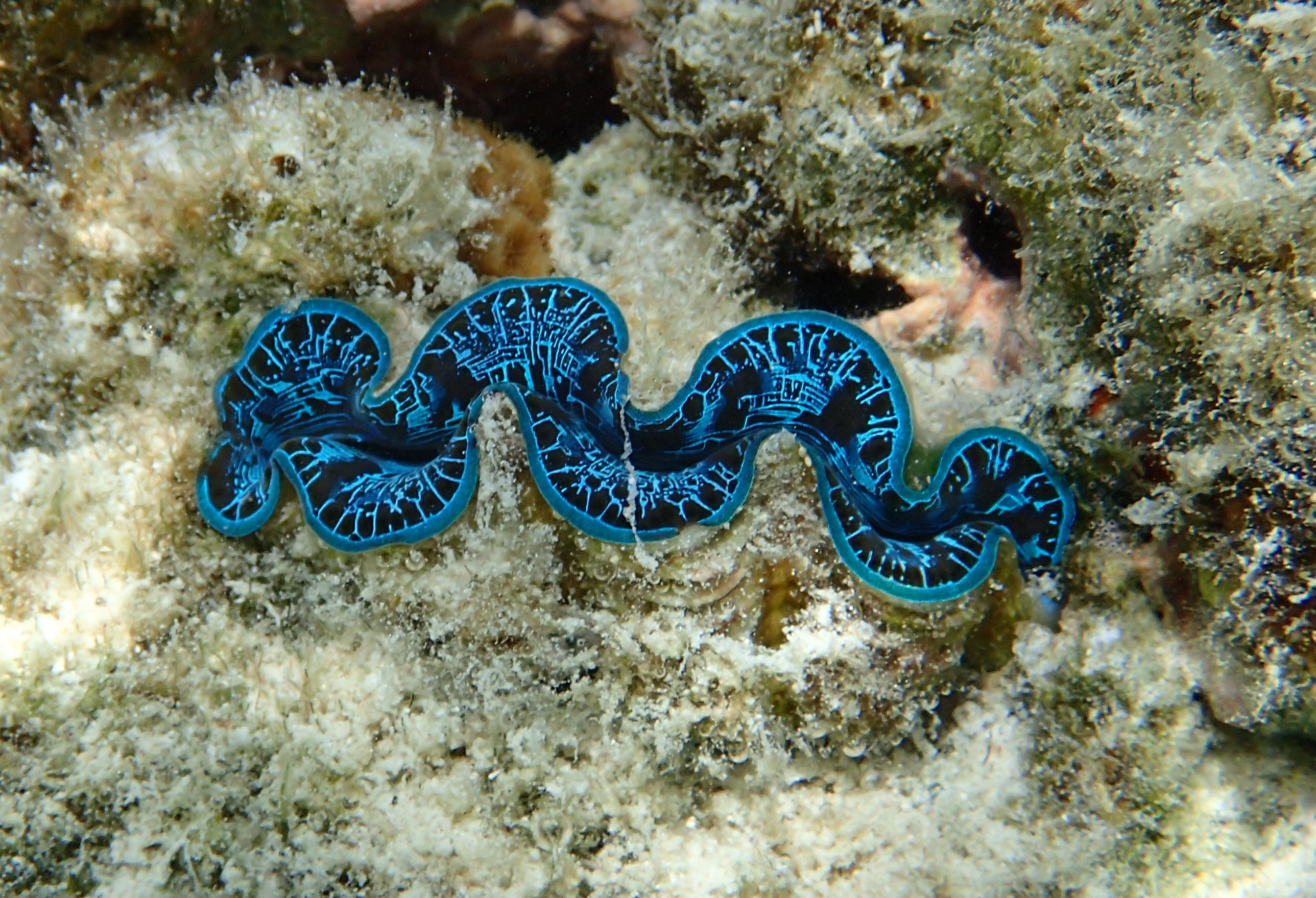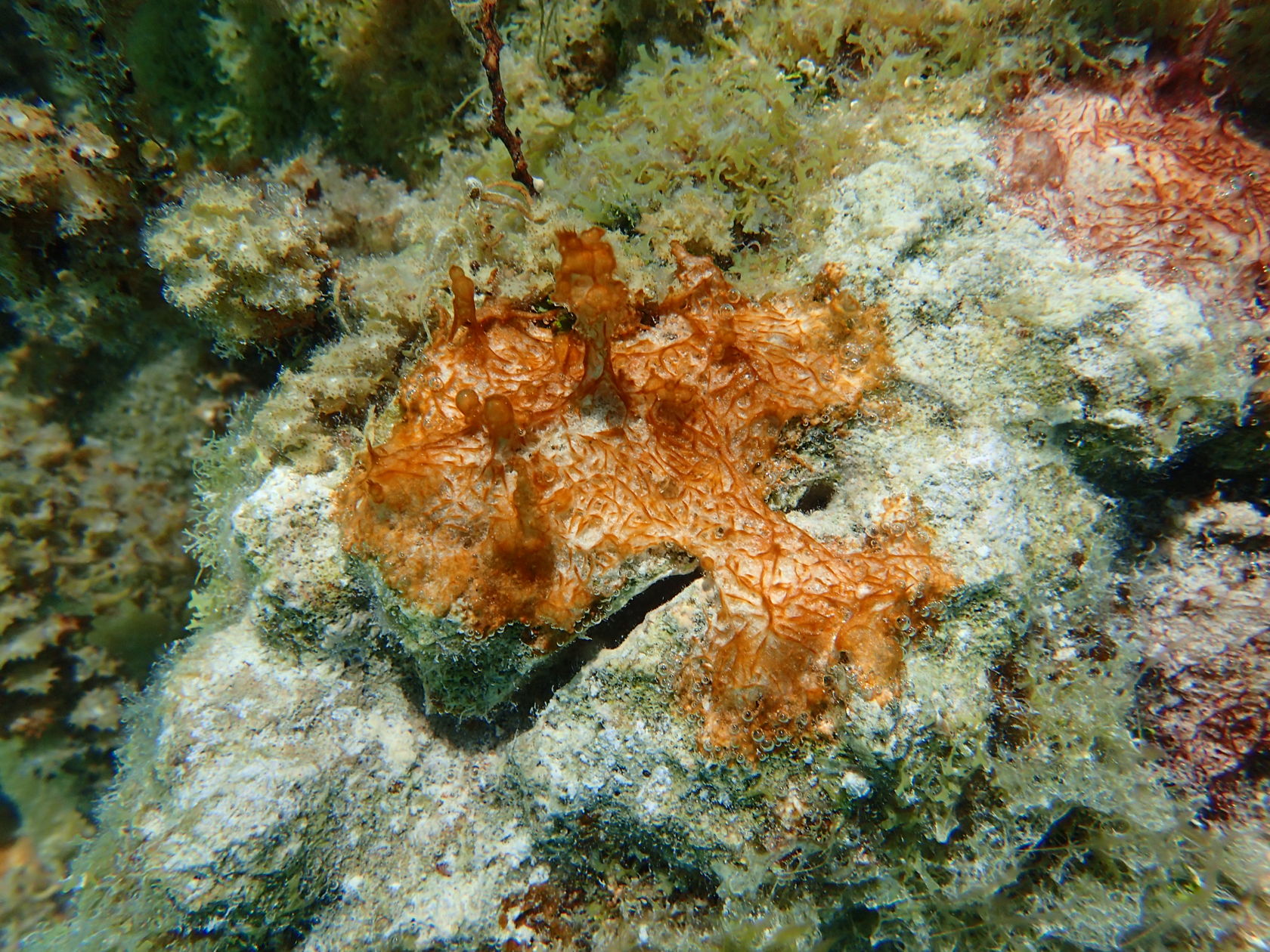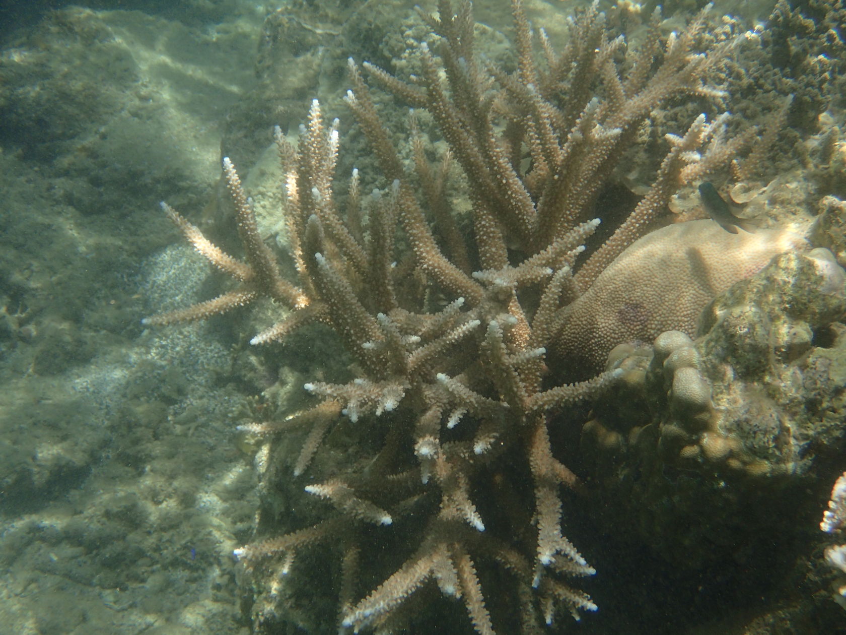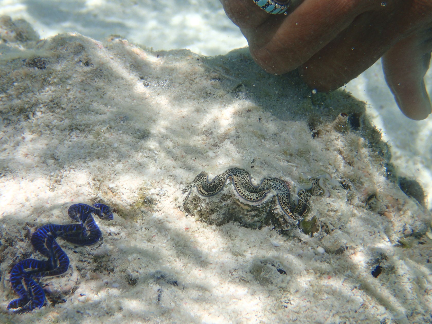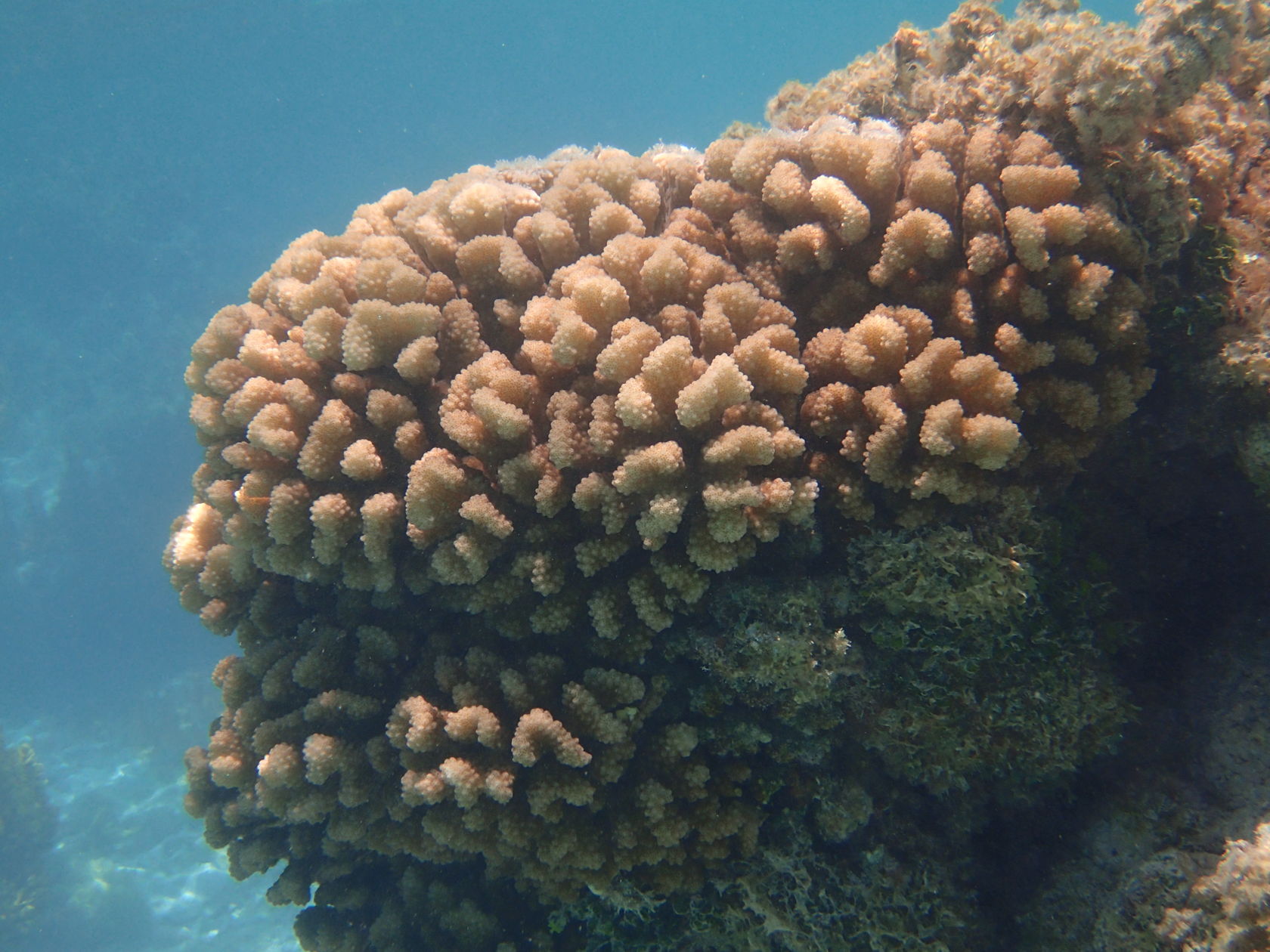 I was able to snorkel some. I was initially disappointed by the seagrass and sand upon entering but another snorkeler pointed to an area where he said there were corals. Sure enough, as one went out the water cleared up some and coral encrusted boulders appeared. I didn’t feel comfortable going very far out since I was soon the only person in the water, but did go far enough to see many interesting features. Some of the photos, taken with an Olympus TG-4 underwater camera, are shown below.