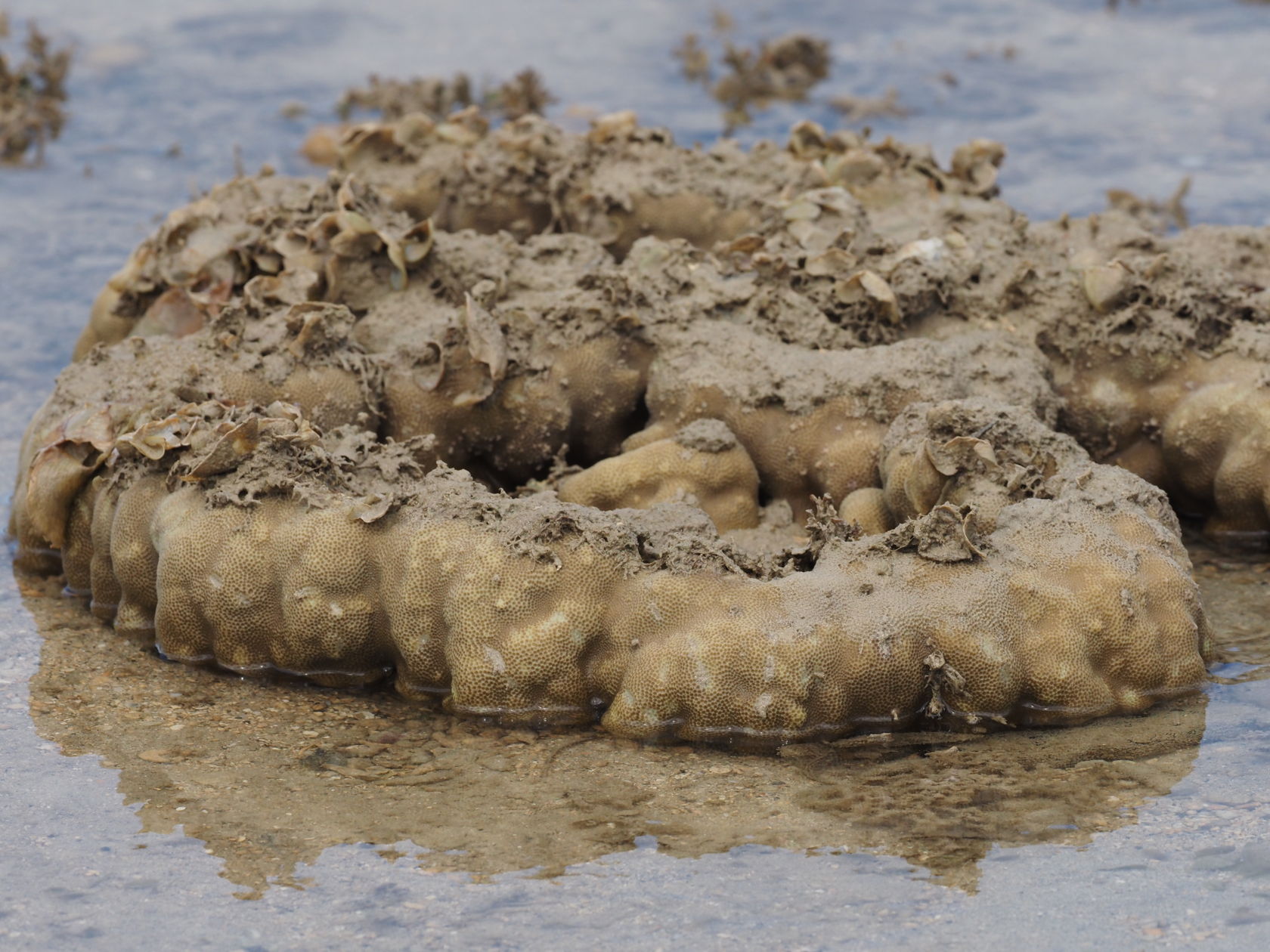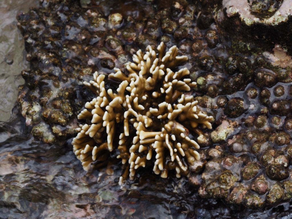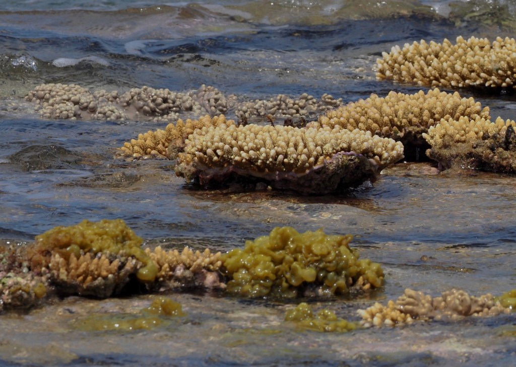 We did not snorkel in Nuku Alofa, Tonga, but we walked along the rocky shoreline next to the dock where the ship was tied up. We could see various shells and corals at the low tide. Some views are shown below. Keep in mind these were taken with a telephoto lens and one couldn’t get really close to the corals and sponges where the waves were breaking.