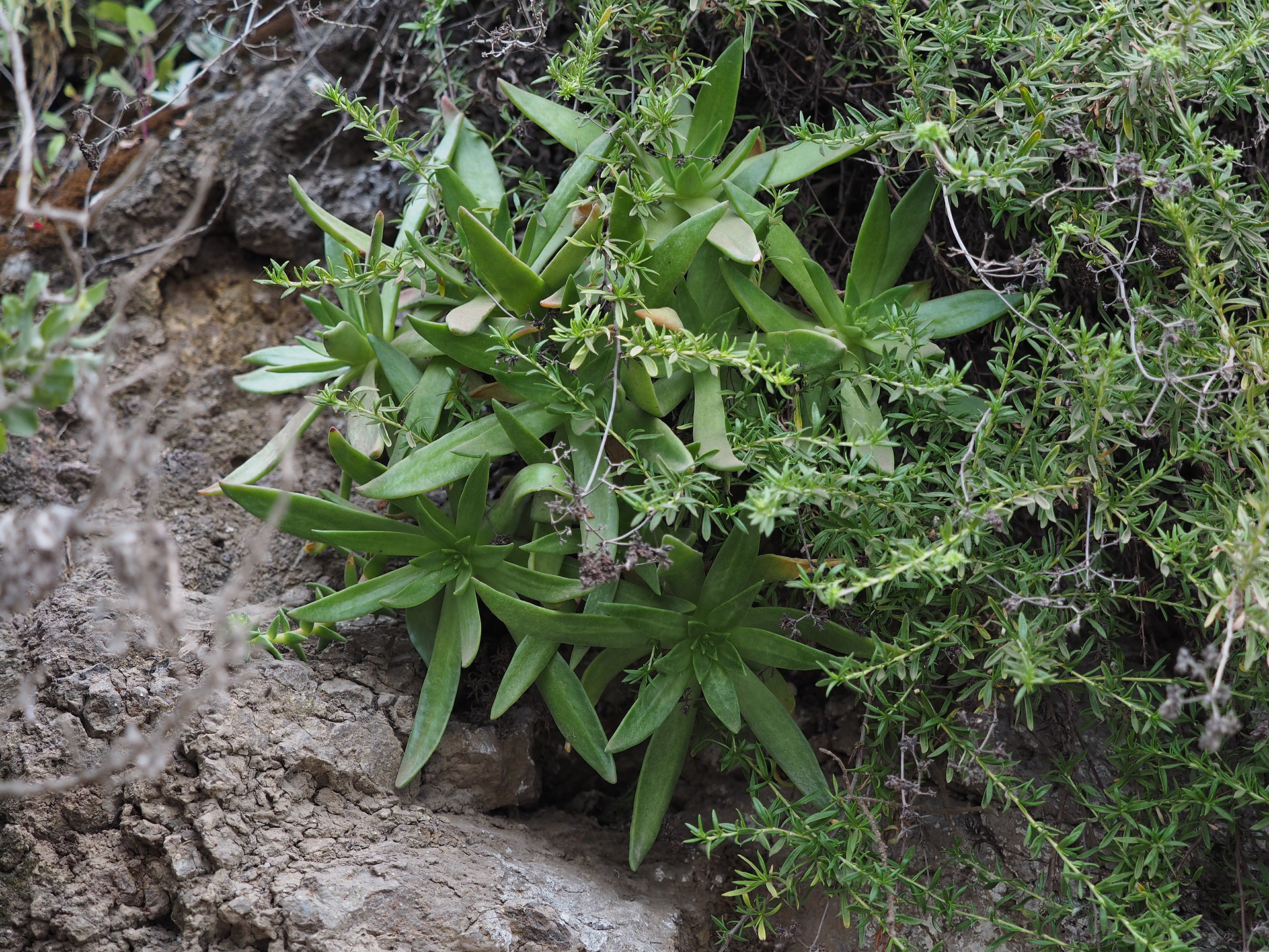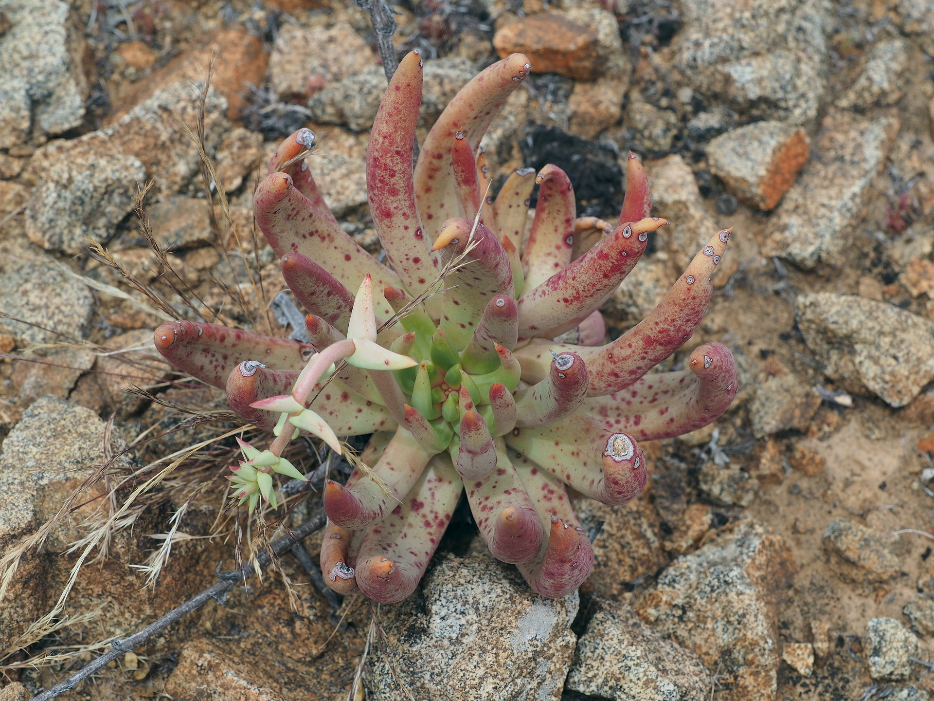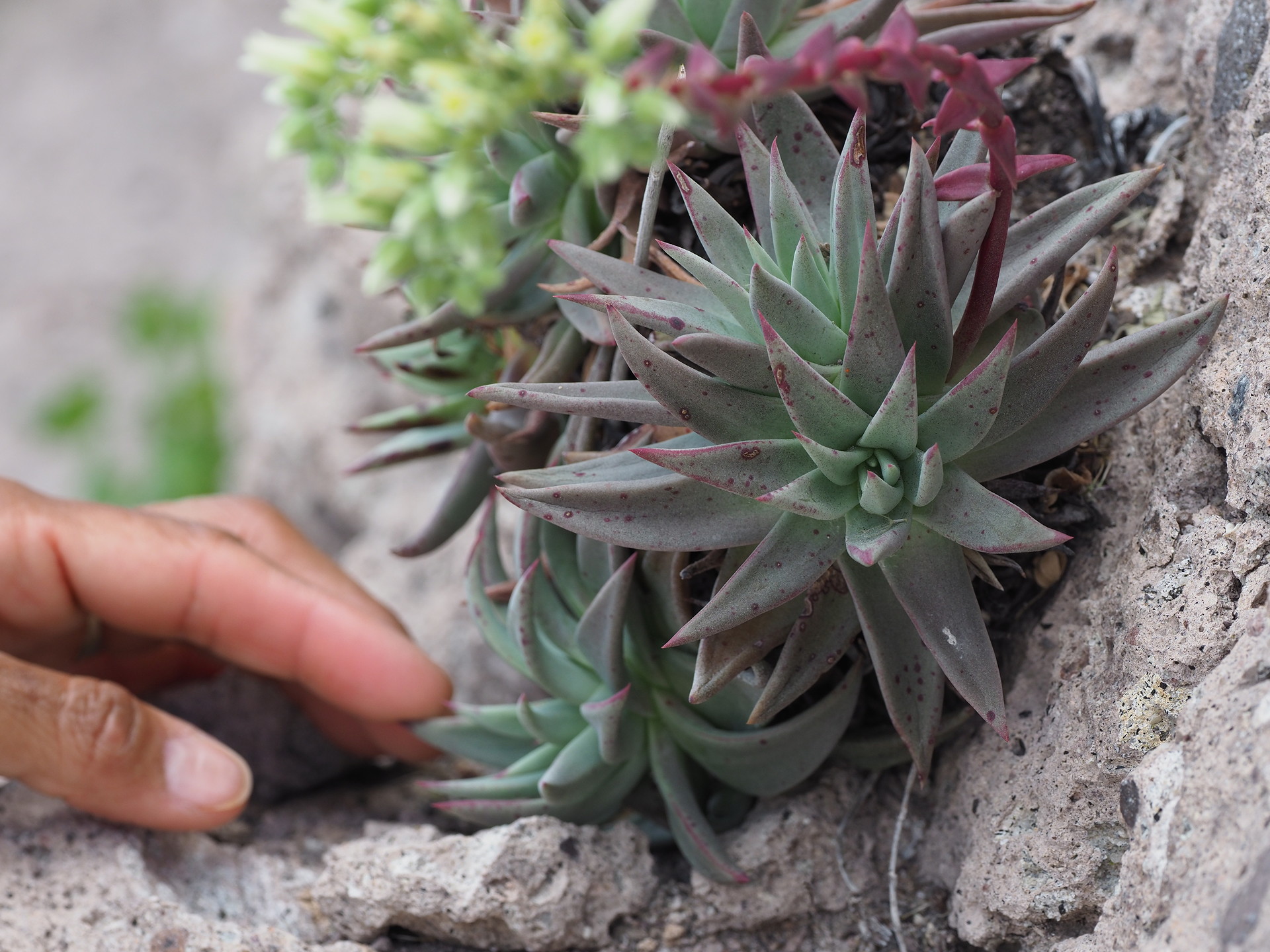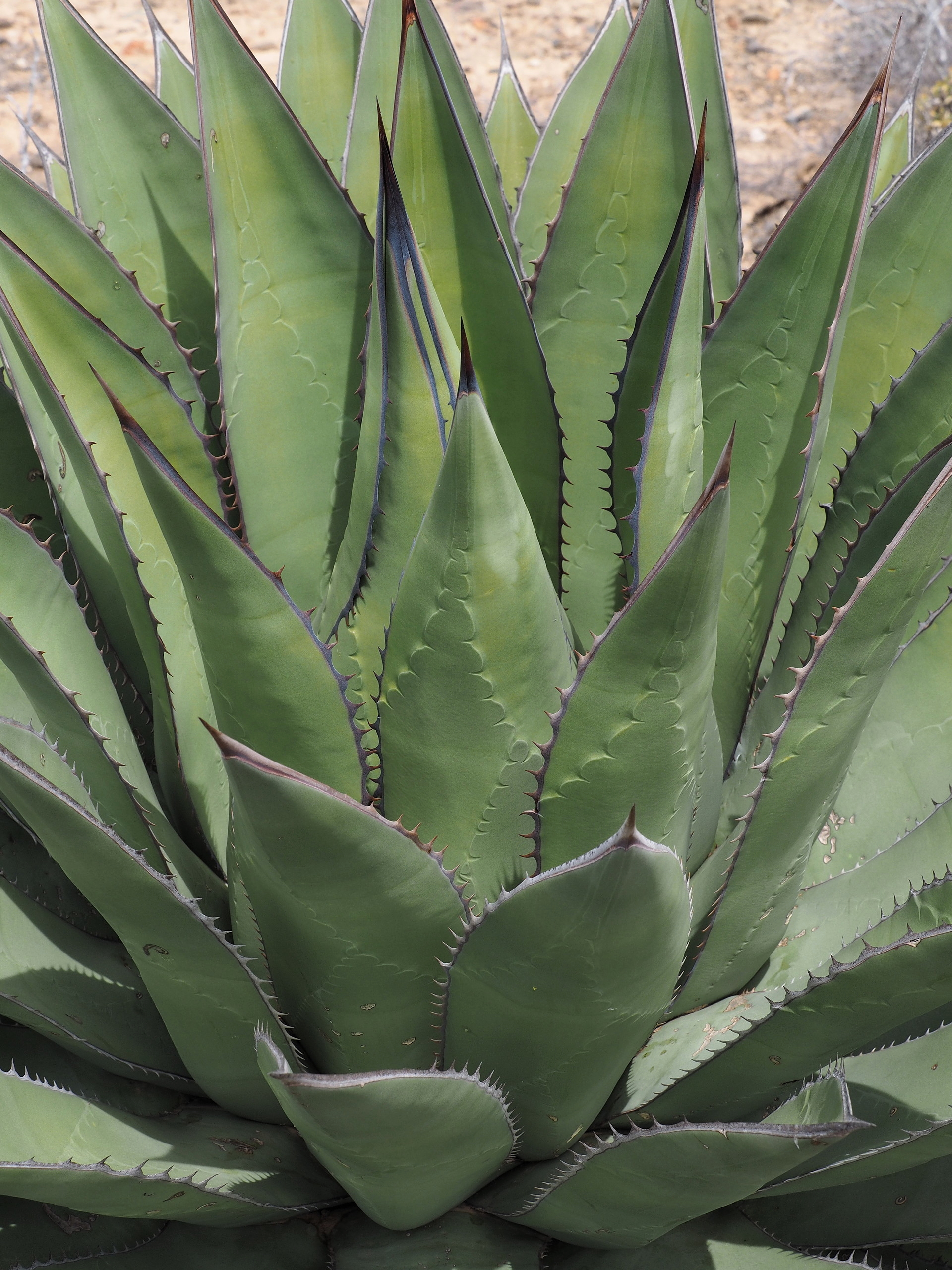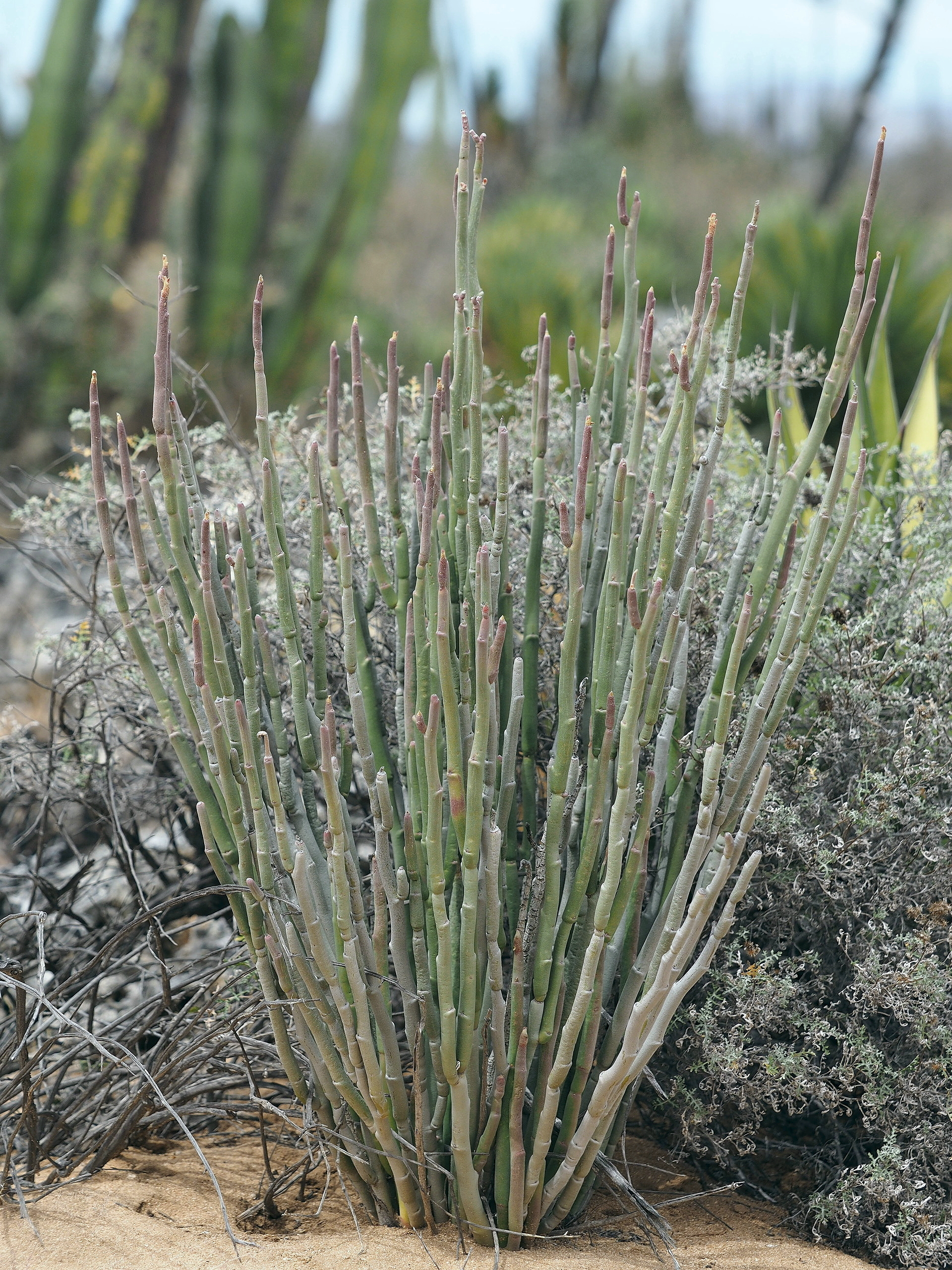 Baja California is know for its xerophytic plants. Many of these are succulents while others are generally not considered succulents but are iconic features of the dry landscape. The major succulent plant groups include the cactus family (Cactaceae), the Crassulaceae (especially the genus Dudleya), and the Asparagaceae (Agaves and Yuccas). There are also some succulent Euphorbiaceae (especially Pedilanthus (now placed in the genus Euphorbia) and Jatropa) but much fewer than in Africa.