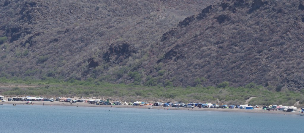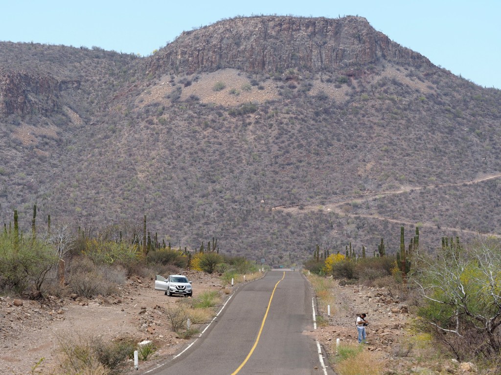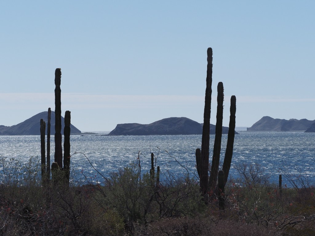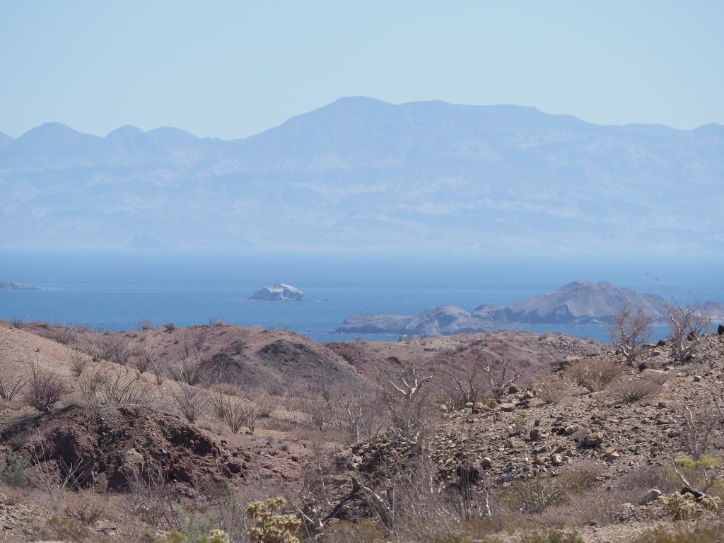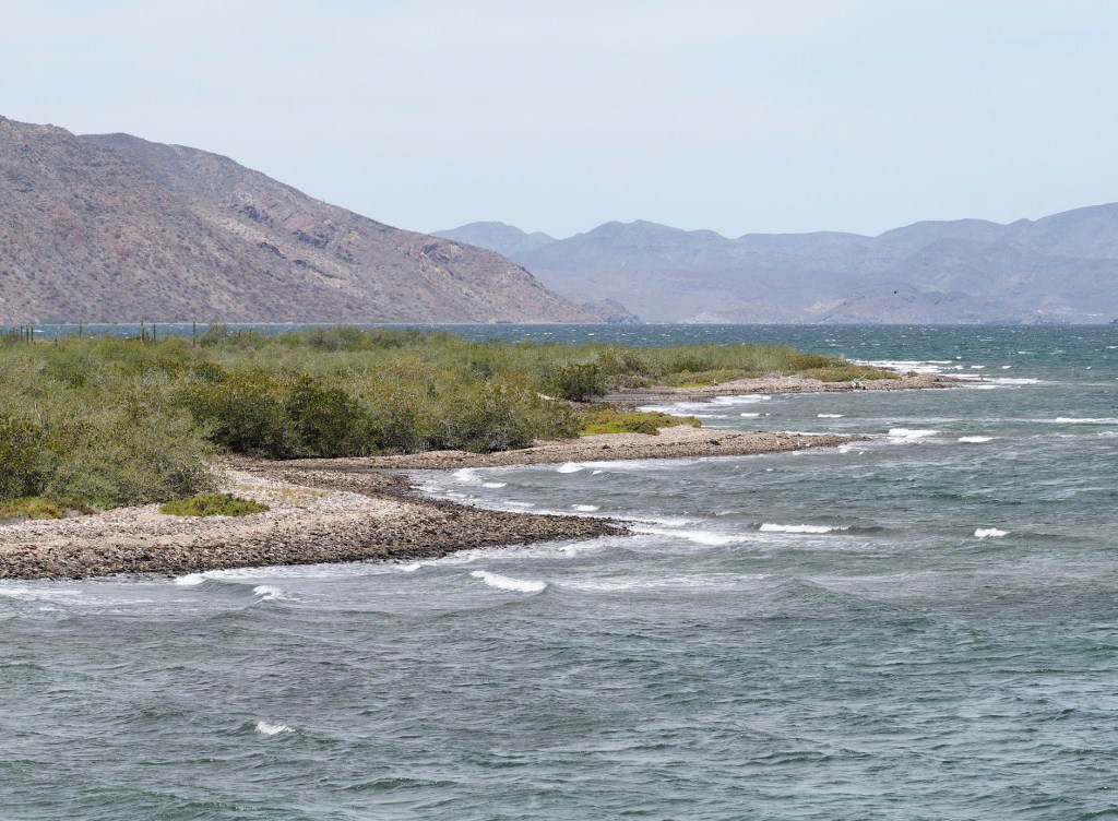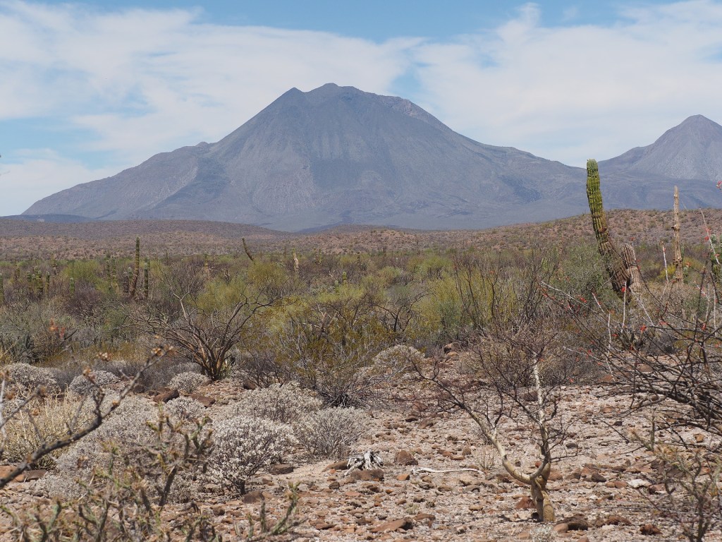The desert bordering the Gulf of California, extending from the crest of the peninsula to the shores of the Gulf – and to the Gulf islands as well, is mostly a rain-shadow desert. Air flowing across the peninsula descends after passing the crest and this subsidence prevents the formation of low clouds that are common west of the peninsula’s divide. The greater annual sunlight and warmer temperatures result in much greater aridity and a desert that looks different from the central desert of Baja California.