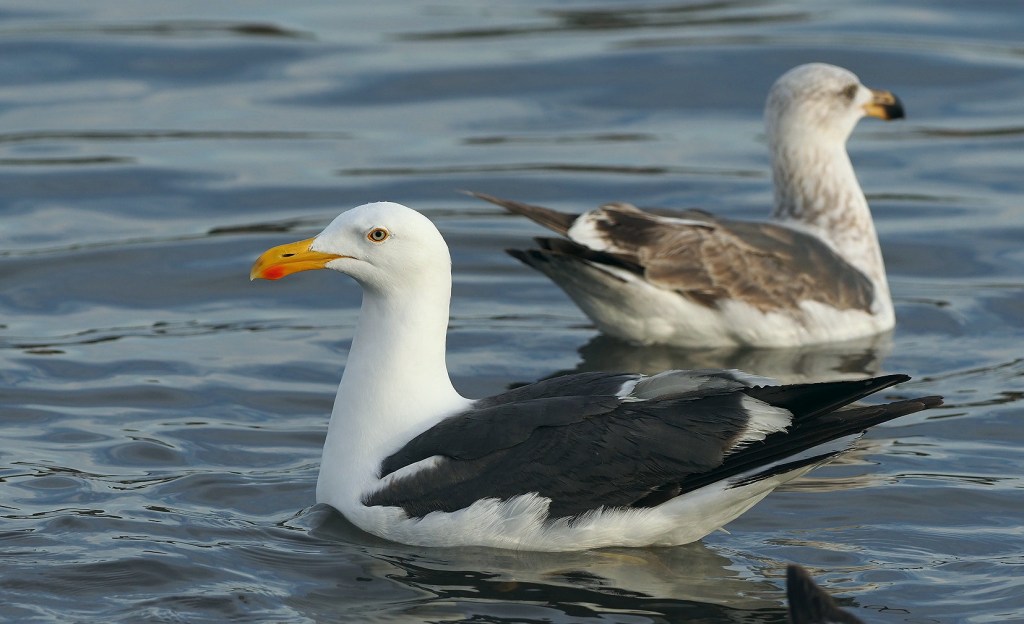 The fauna of the Central Gulf Desert can also be considered a bit strange. In addition to the usual birds of dry deserts, probably the most obvious birds of this region are actually shorebirds and sea birds. As the road meanders close to the shore in many places wading birds, shore birds and pelagic birds like Frigatebirds, Pelicans and Boobies can be seen. For tourists from higher latitudes probably the most novel birds are the Frigatebirds that never stray far from the ocean and often soar high overhead. Ospreys are common, as are pelicans and some gull species. In the vicinity of mangroves and where seasonal streams enter the gulf one finds Reddish and Little Blue Egrets and Great Blue Herons and Black Crowned Night Herons. None of these birds are however endemic to the peninsula and have wide distributions.