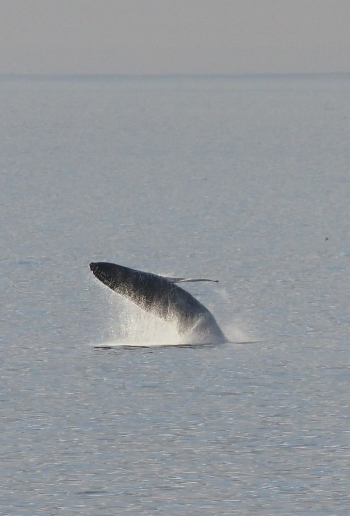 The highlight of our cruising around Iceland were the whales we say after leaving Akureyri – over a period of at least 3 hours. Here are some whale photos taken by me (Mike Douglas) from the evening of June 23 on our cruise around Iceland. All photos were taken by an Olympus mirrorless camera (OMD EM1X) with a 300mm fixed focal length telephoto lens. All images shown here are crops from the original images and have been slightly sharpened and brightness/contrast adjusted. The whales were not really that close to the ship in most cases, hence some of the images are not particularly “crisp”. There were, we guess, about 30-50 whales seen over a several hour period after leaving Akureyri. Click on any image to begin the sequence and the full-size images should be visible by clicking on the “i”. The whales were identified by iNaturalist to be Humpback Whales (Megaptera novaeangliae). See Wikipedia for much more detail.