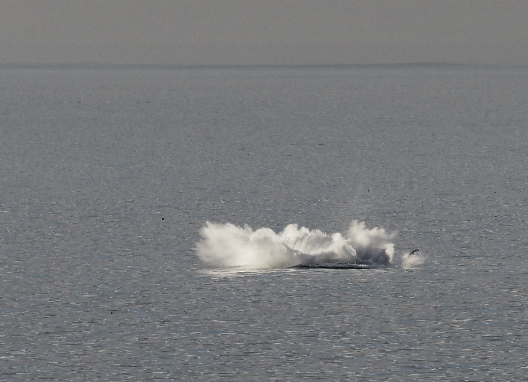 As the ship did a rotation so both sides could see the Nordkapp, the wind waves were temporarily blocked by the ship on one side and in the calm waters we could see a great many small jellyfish in the upper layers. These were mostly comb jellies, with lesser numbers of the Lions Mane Jellyfish. No wonder there were lots of seabirds in the area.
