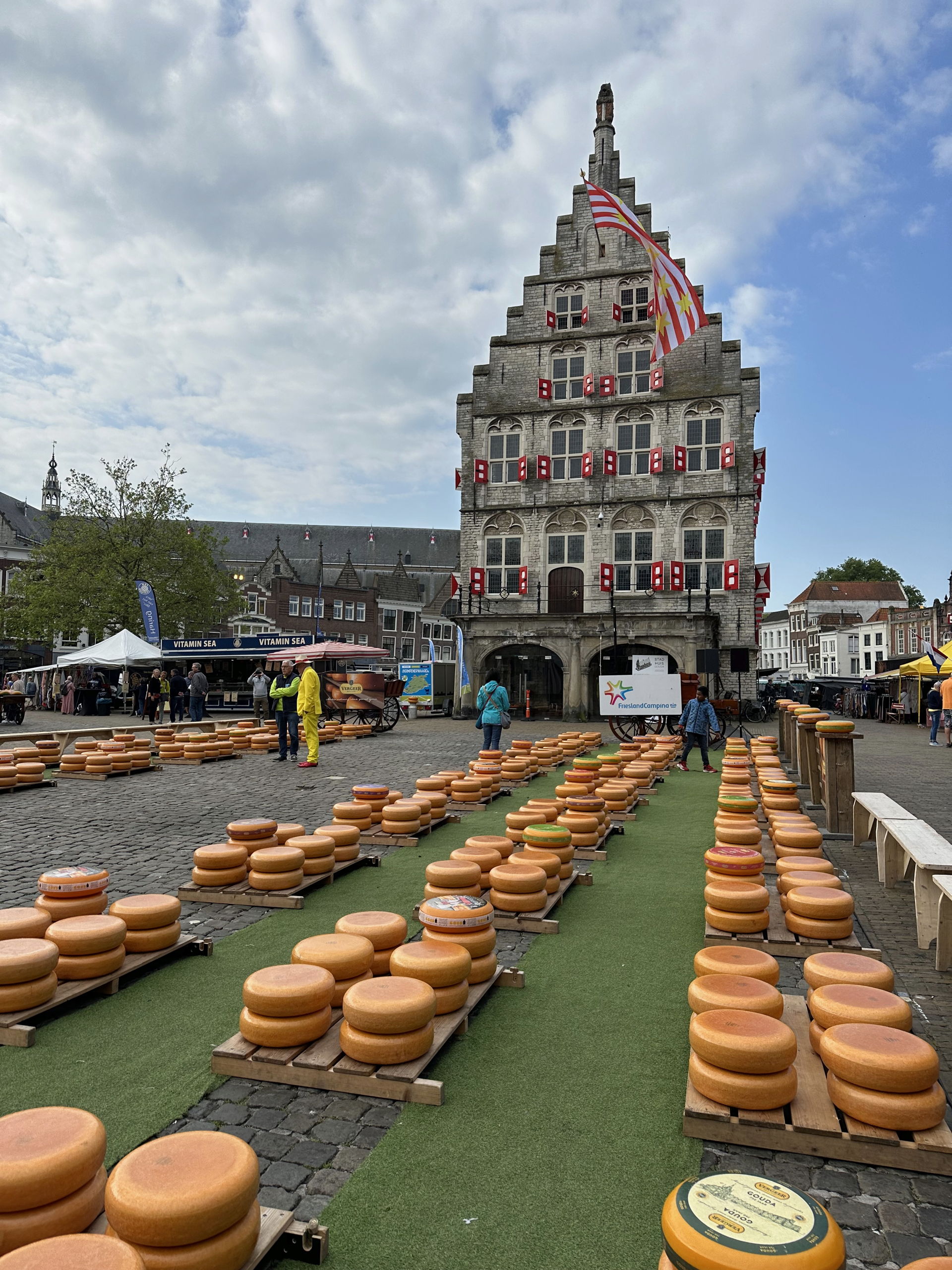 Prior to Rotterdam we spent three nights in Gouda, a smallish town known for its cheese. This was a good decision because Gouda is walkable and had a variety of interesting activities while we were there including a market day and the weekly cheese demonstration.