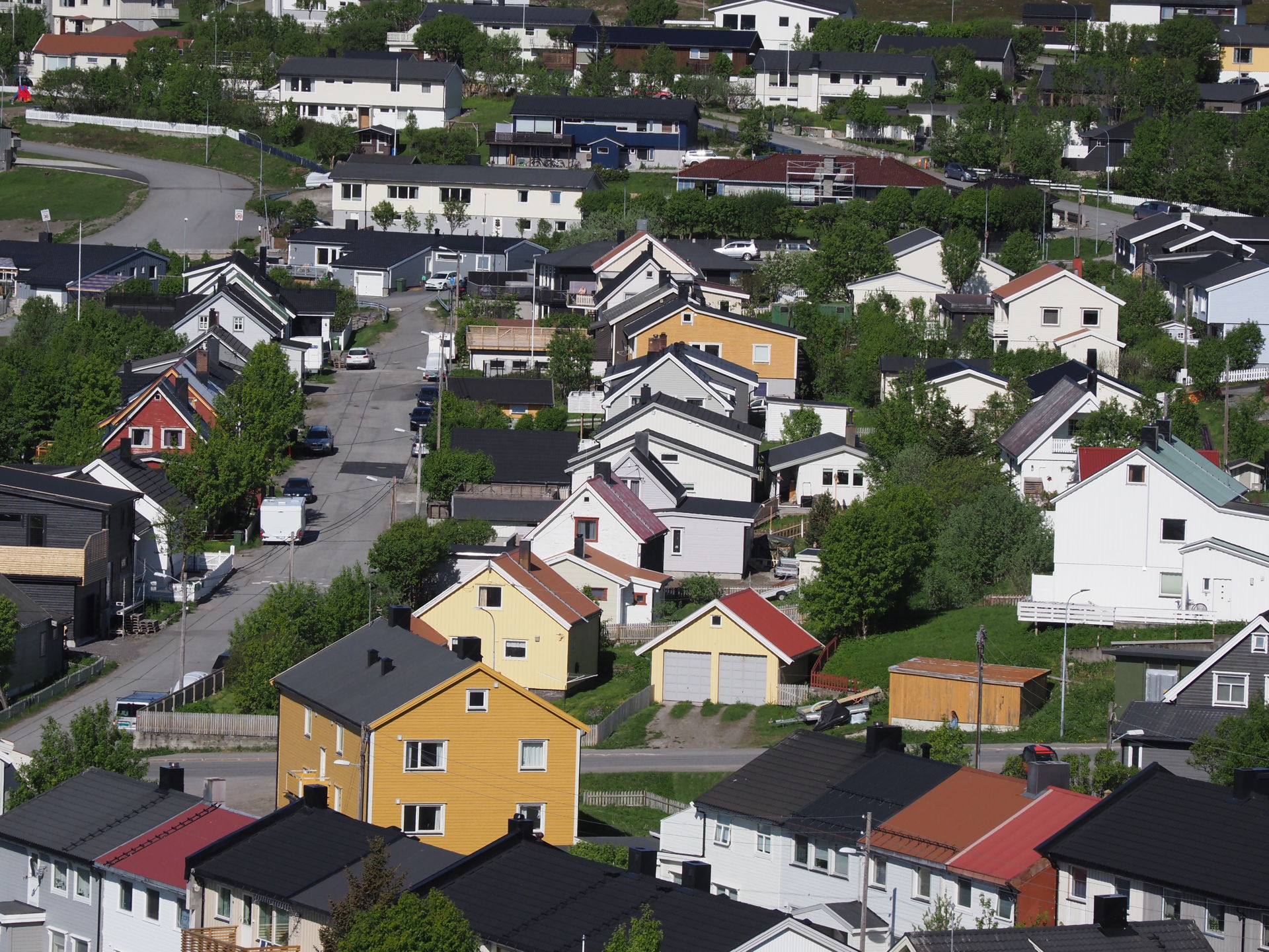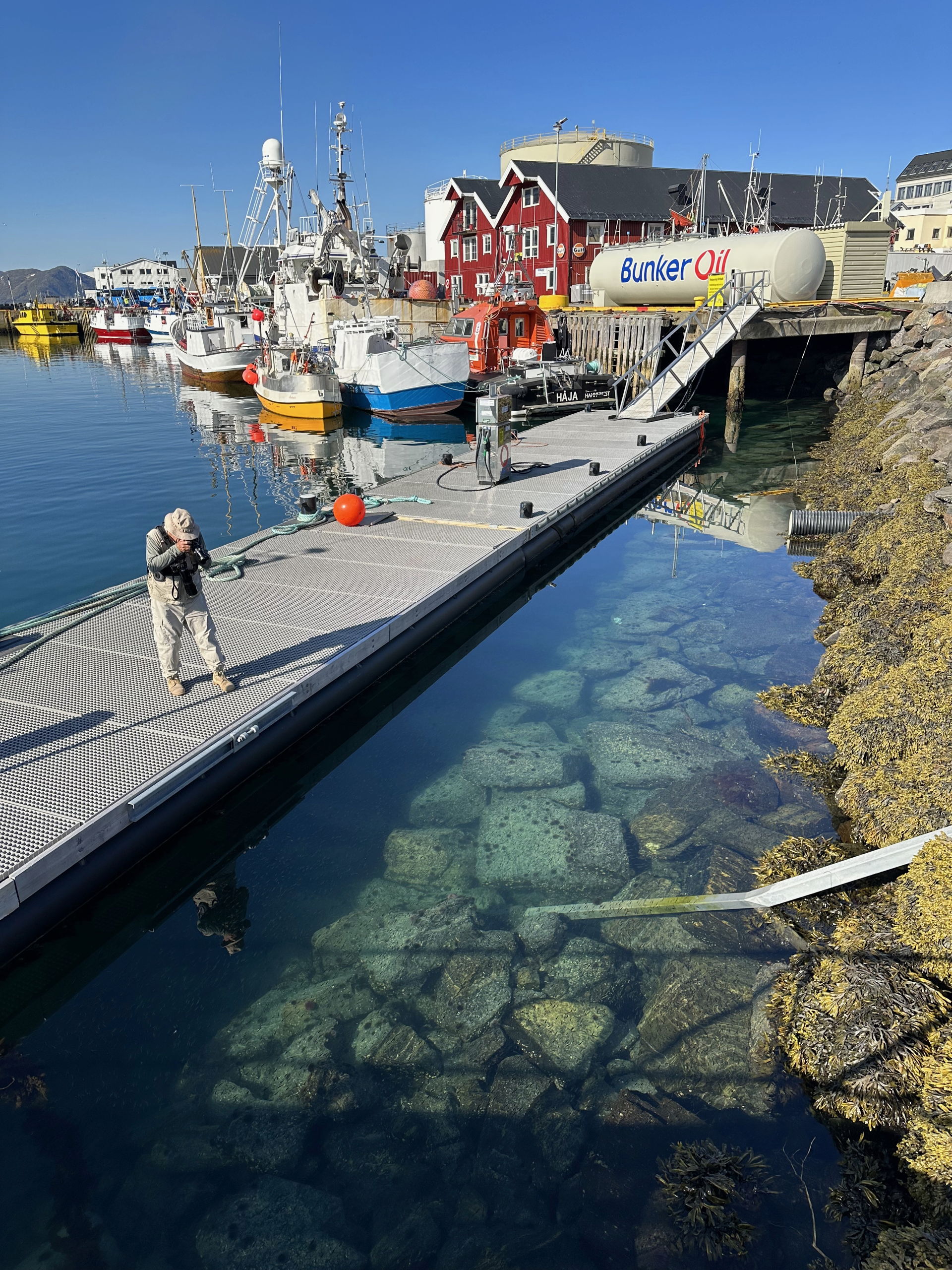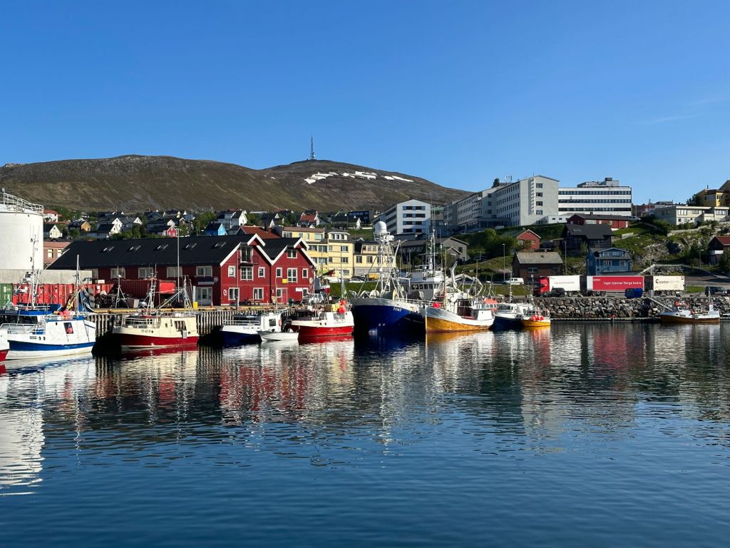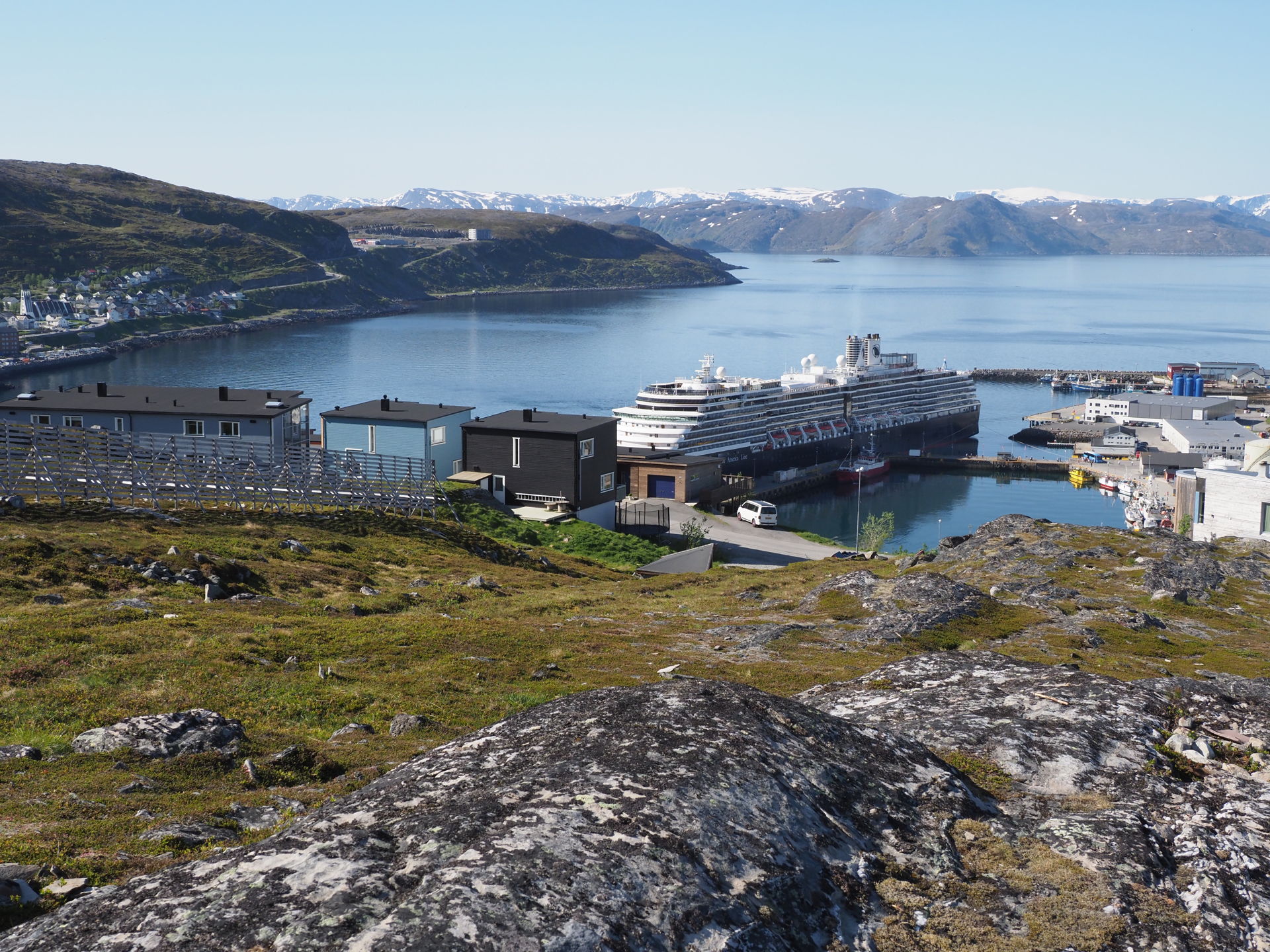 Hammerfest was perhaps our favorite port visit in Norway. It was very small, yet there was no tender and the dock’s immediate area had an interesting variety of marine life that could be easily seen in the calm water. We decided to not take the available shuttle bus into the town center but rather walked up the hill from the dock, through residential areas, to where a road was indicated to lead into tundra. This required a bit of navigation and a little bit of cross-country walking trough tundra vegetation before reaching the dirt road we were seeking. It turns out that this was a very lightly used dead-end road that was gated and led to a shooting range. It was used by a few dog walkers that we met and told us this information (the gate’s signs were in Norwegian).