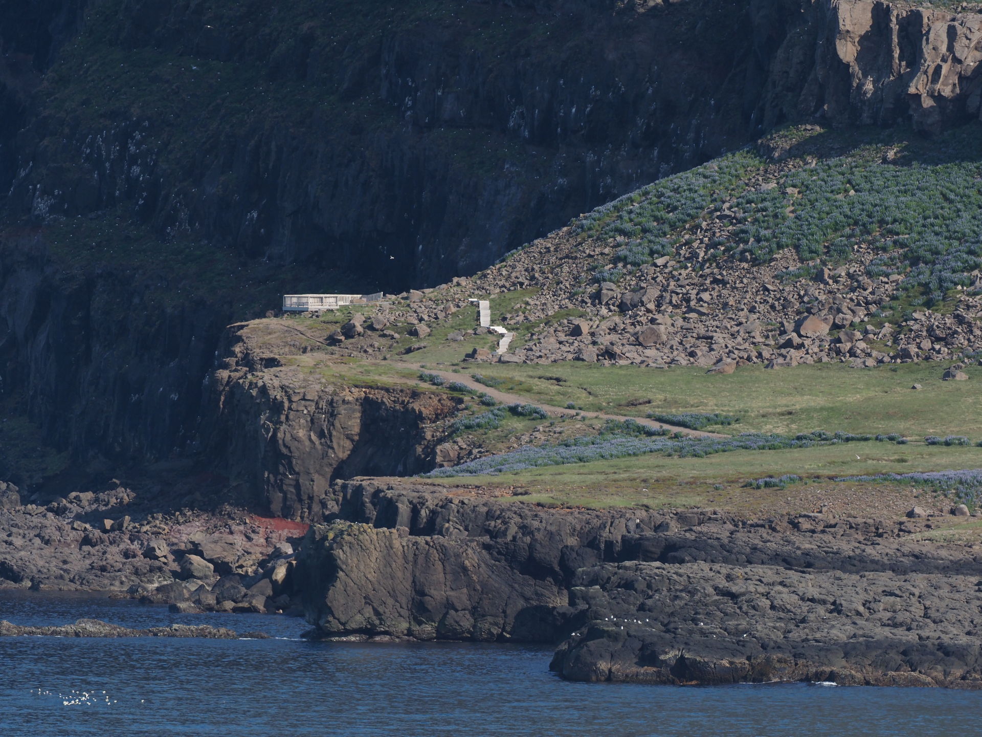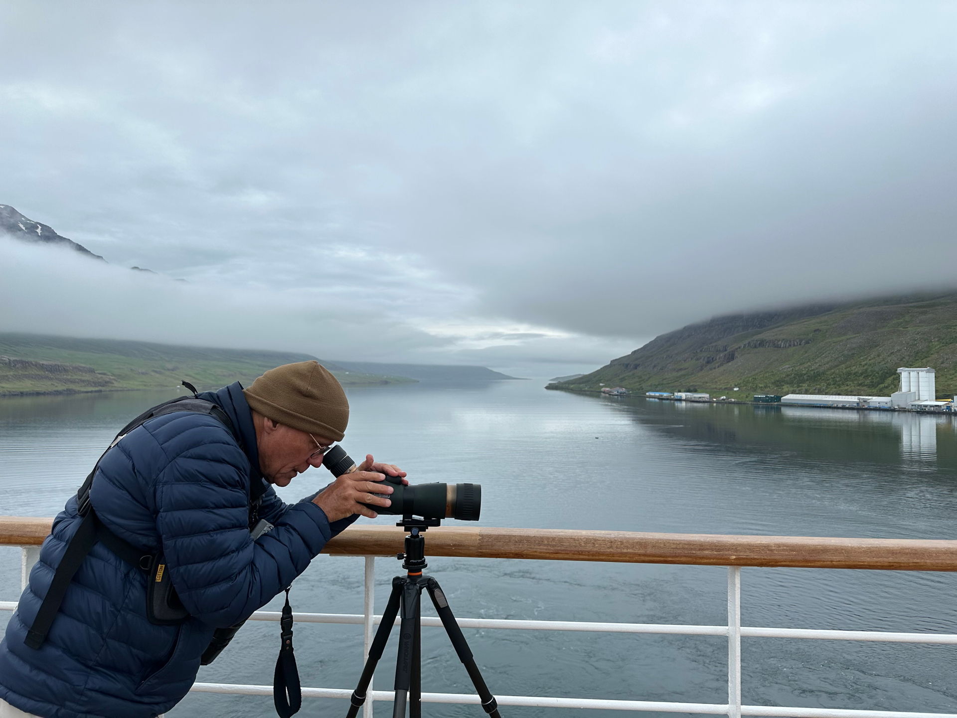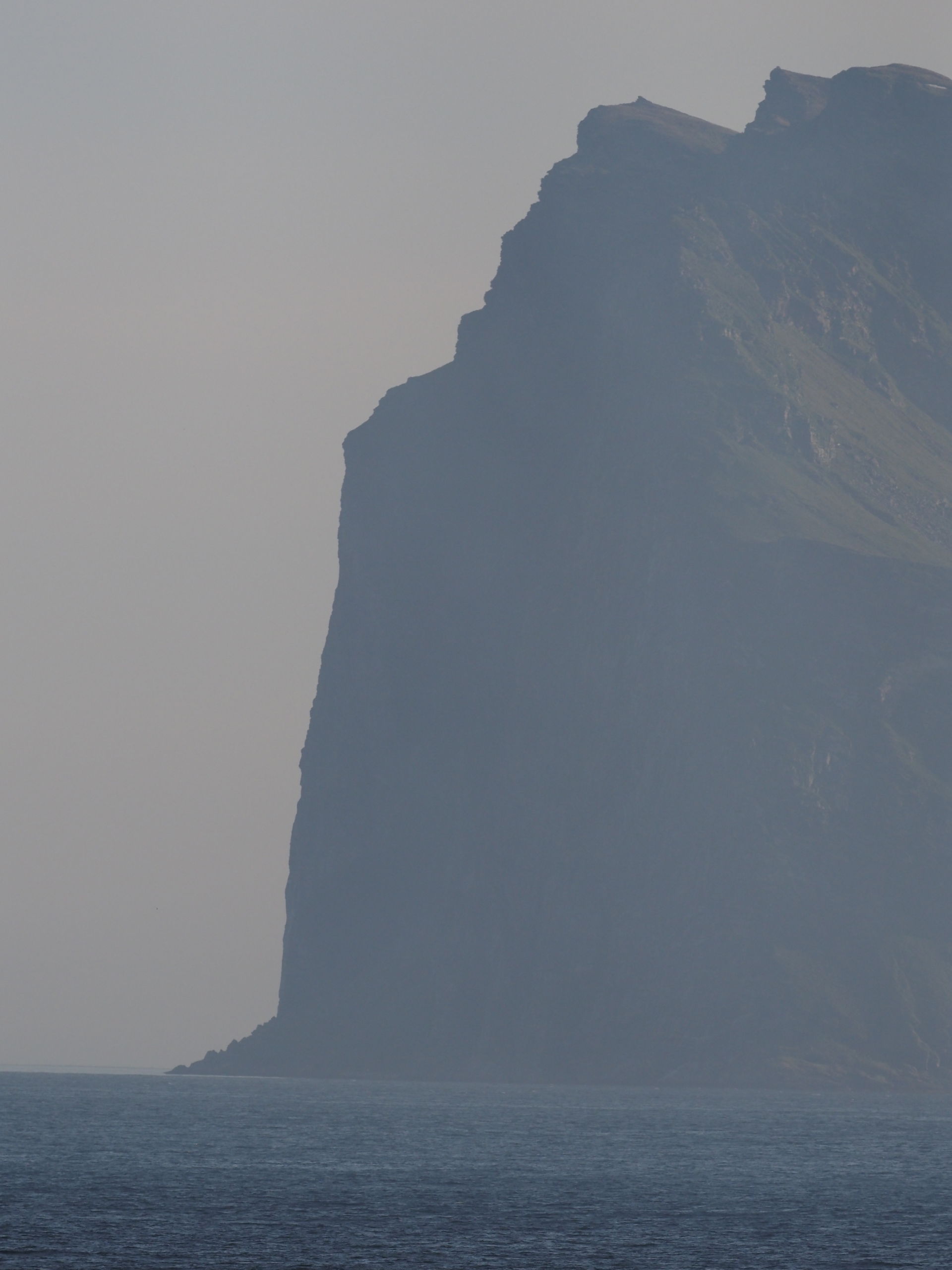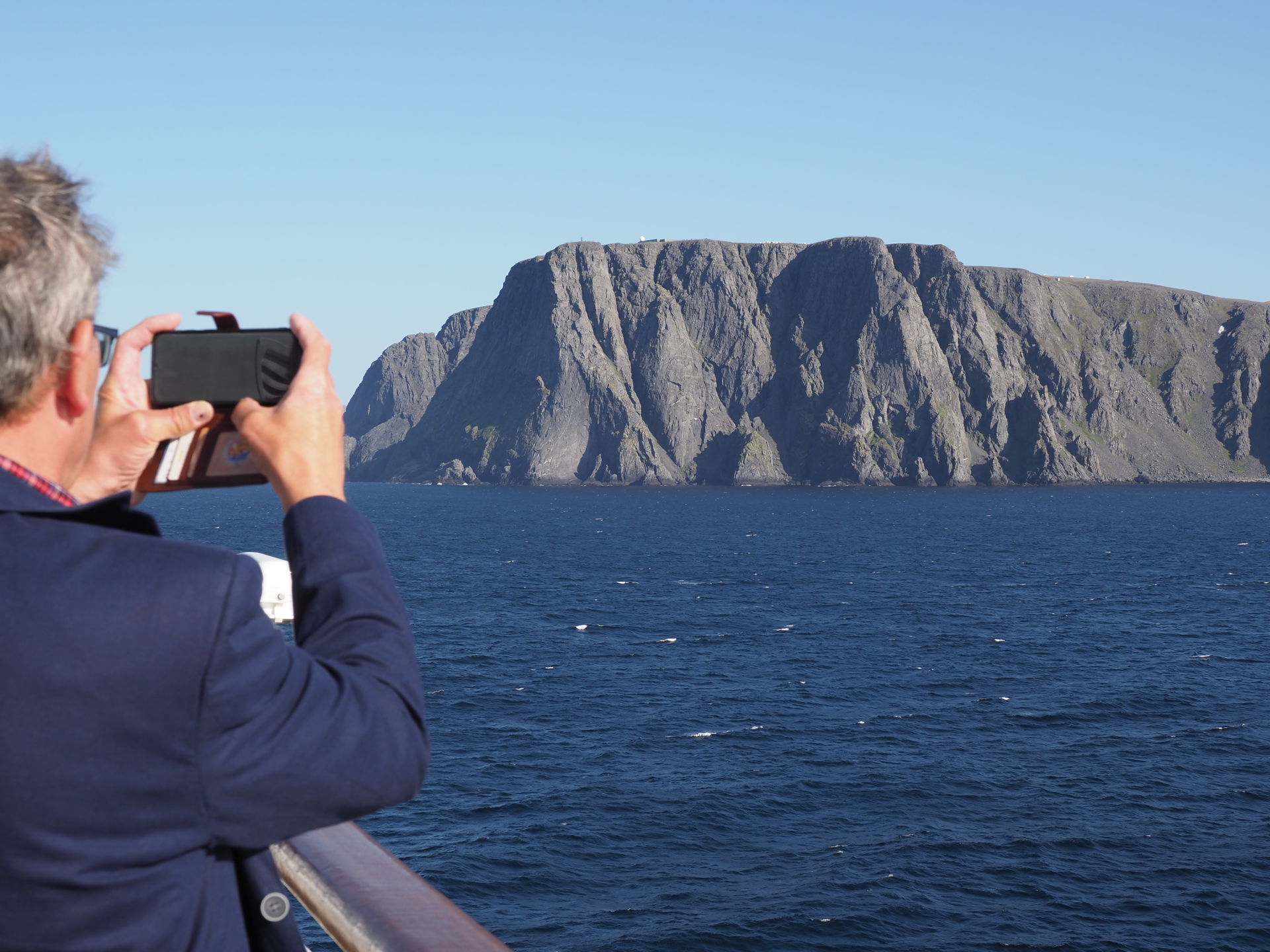 After leaving Hammerfest we did scenic cruising detour to cruise past the North Cape (Nordkapp) – considered the northernmost accessible point in Europe (the northernmost Norway point is a few miles away). Even from our ship far below (the Nordkapp lookout is about 1000 ft above the ocean), we could see that there were lots of people there and many camper vans. The weather was good, justifying the detour that I estimate was at least 55 miles one way. We then headed straight to Iceland.