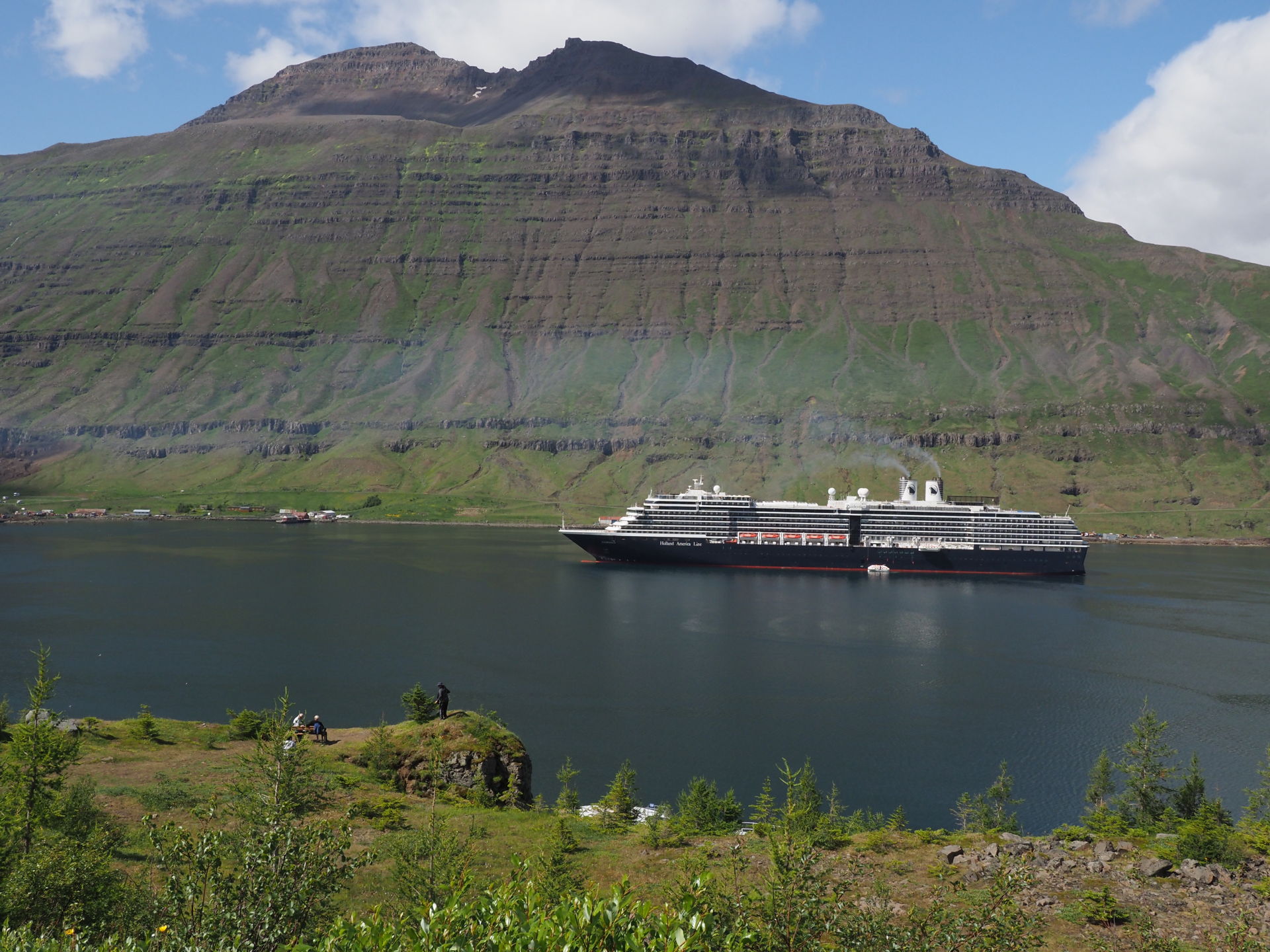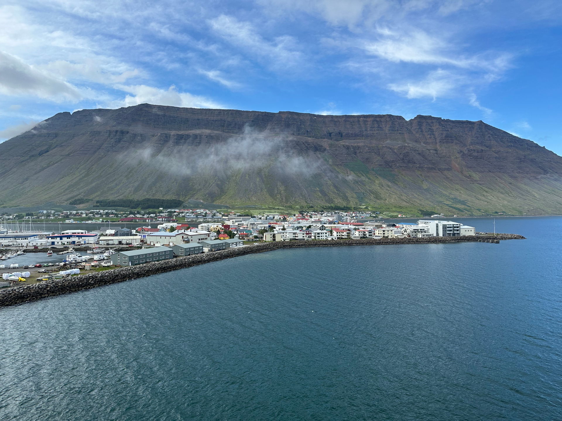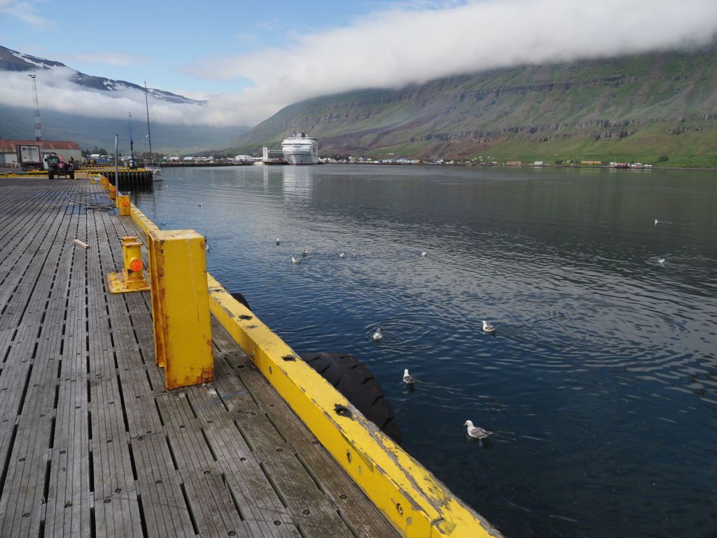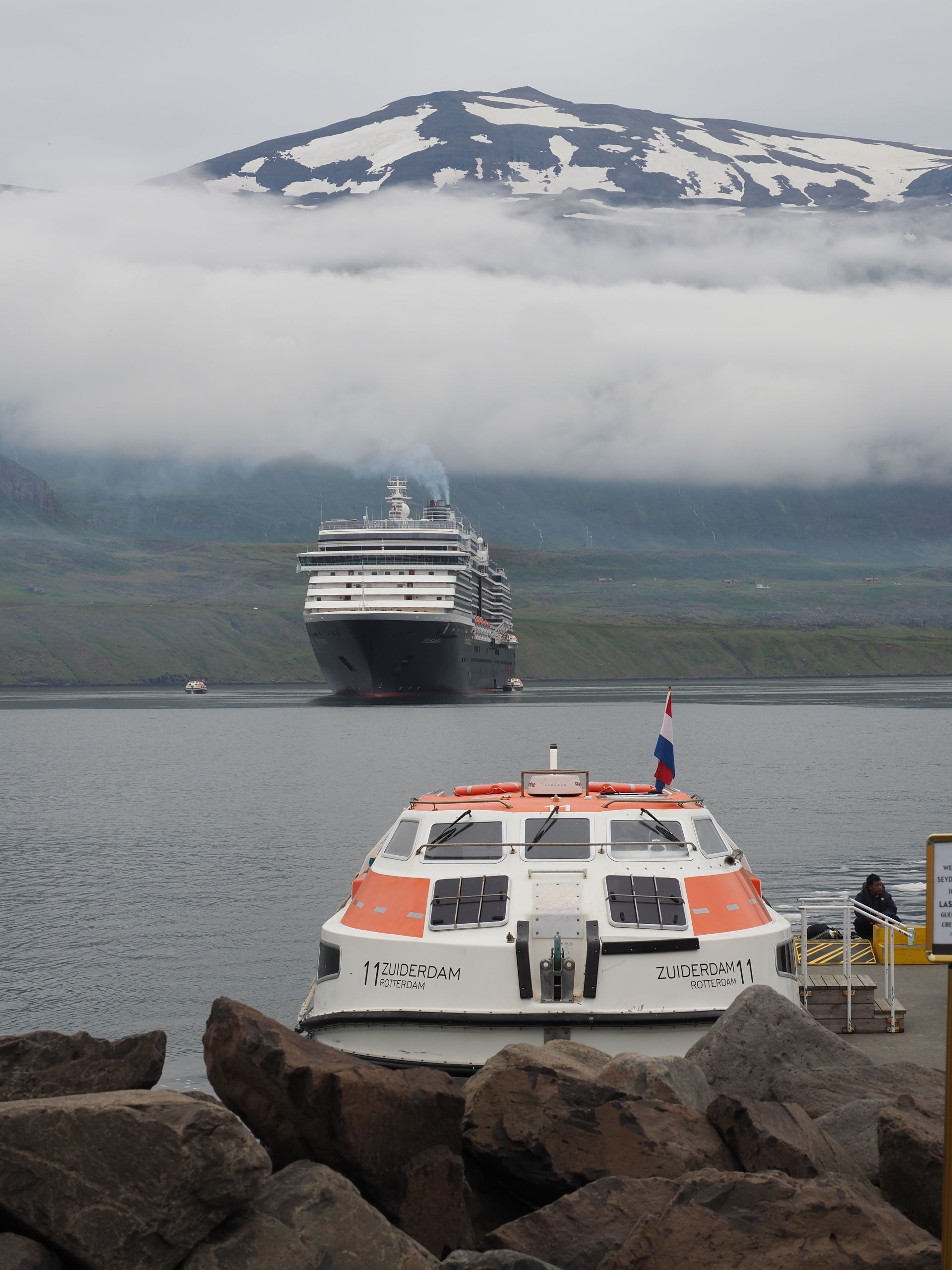 The small port of Isafjordur does not have too much to offer at the local level (other than a small walkable town). We did see an interesting jellyfish we’d not seen elsewhere in the calm waters of the fishing port. Natural attractions were too far to walk to, in our opinion. Bus tours, puffin- and whale-watching tours are offered by the local tour companies. We were able to dock an a new port area under construction while another Holland America ship following us (Nieuw Statendam) had to tender to shore.