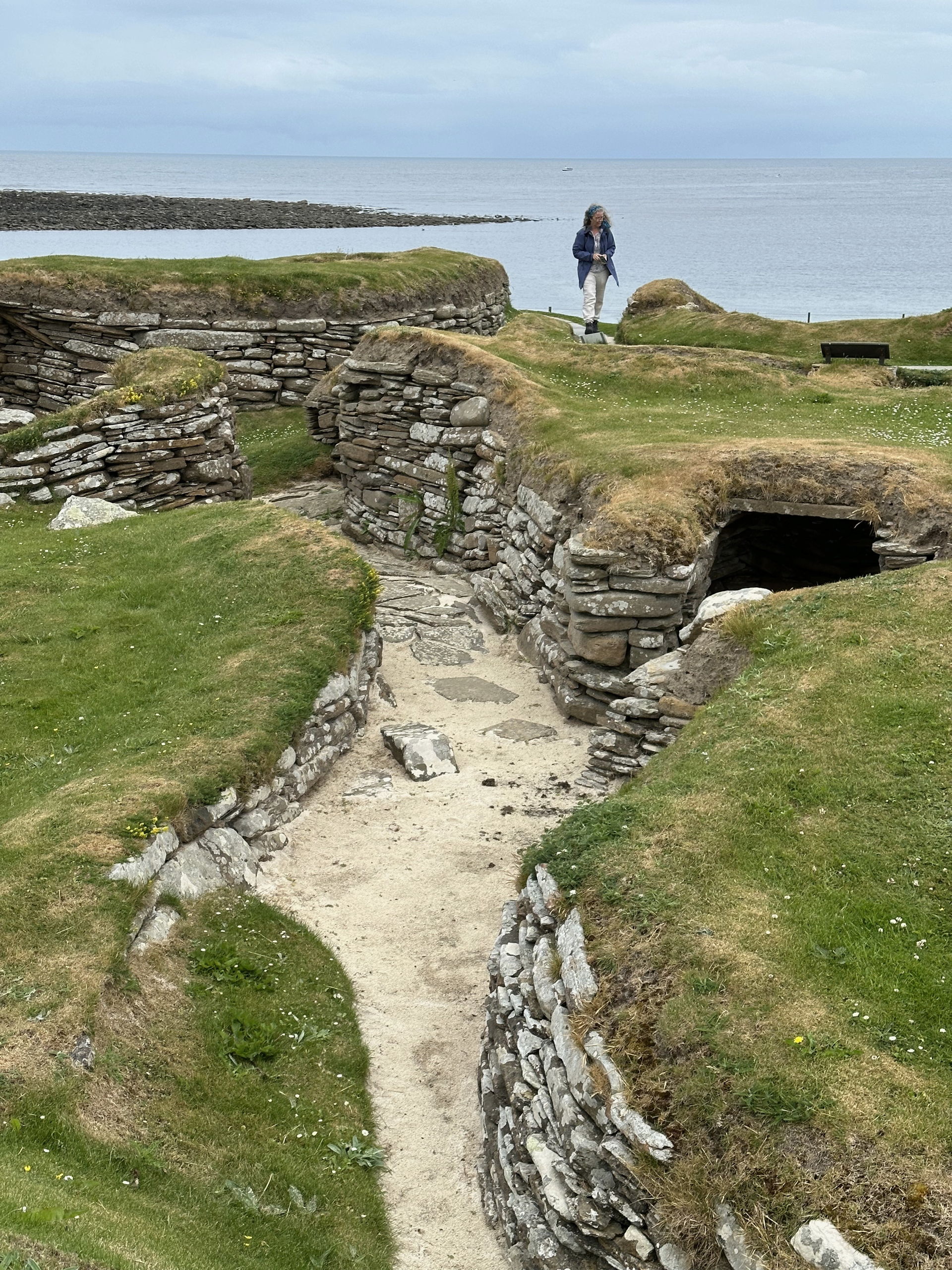 Kirkwall is a small town in the Orkney Islands. Honestly, until this past cruise I could not have distinguished between the Orkney, Shetland and Faroe Islands on a map. It was just a part of the world I hadn’t been interested in. But the ship stopped at Kirkwall, and we decided to take a tour because it wasn’t feasible to walk anywhere given the distances. In fairness, our tour hit the highlights of the island (there are many islands comprising the Orkney’s) – the impressive Yesnaby cliff overlook, a 4000 year old village site at Scara Brae, and several standing stone monuments (Ring of Brodgar, Standing Stones of Stenness) that are the Orkney equivalents of Stonehenge. The narration was interesting – clearly you won’t get nearly as much out of a self-driving experience without a local person narrating your tour. We did see some birds, lichens (on the standing stones) and wildflowers. Our only regret is that we barely had any time at the best site (to us) – the cliffs at Yesnaby. We could have spent hours walking the cliffside trail that apparently runs for some distance.