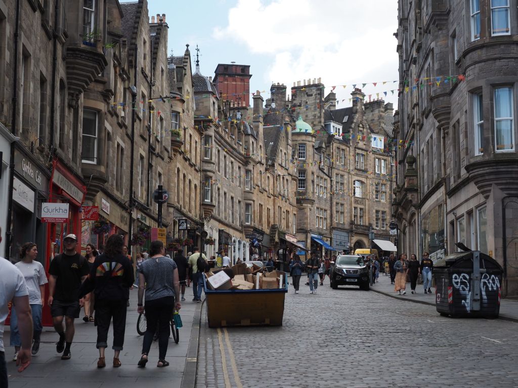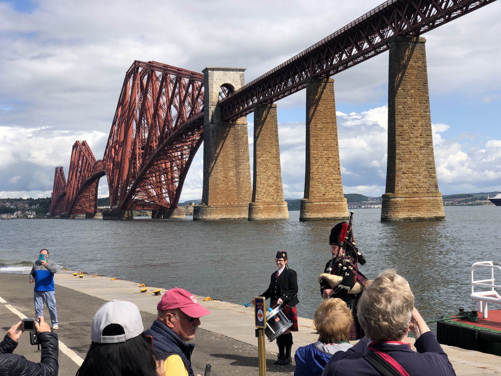 Our visit to Edinburgh was anticlimactic. We took the shuttle bus in to the city from the port of South Queensferry – about a 30 minute ride. After an hour or so, trying to navigate among the hoards that were swarming along the “Royal Mile” shopping street, we had had enough. We headed towards the train station – eager to take a train ride. We managed to purchase tickets for the return to the nearest station to where the ship’s tender port was and it took less time, and cost less, than our bus ride into Edinburgh. Walking back to the ship involved walking through a neighborhood, along forested pathways, and down a long flight of stairs in the forest. But it was so much more pleasant than enduring the crowds of downtown Edinburgh. And as for the acclaimed architecture of Edinburgh. -we thought it was hideous. (Our cruise Director had described Edinburgh as the most beautiful city he had seen – clearly he needed further travels in our opinion! Art and architecture is clearly in the eye of the beholder…)