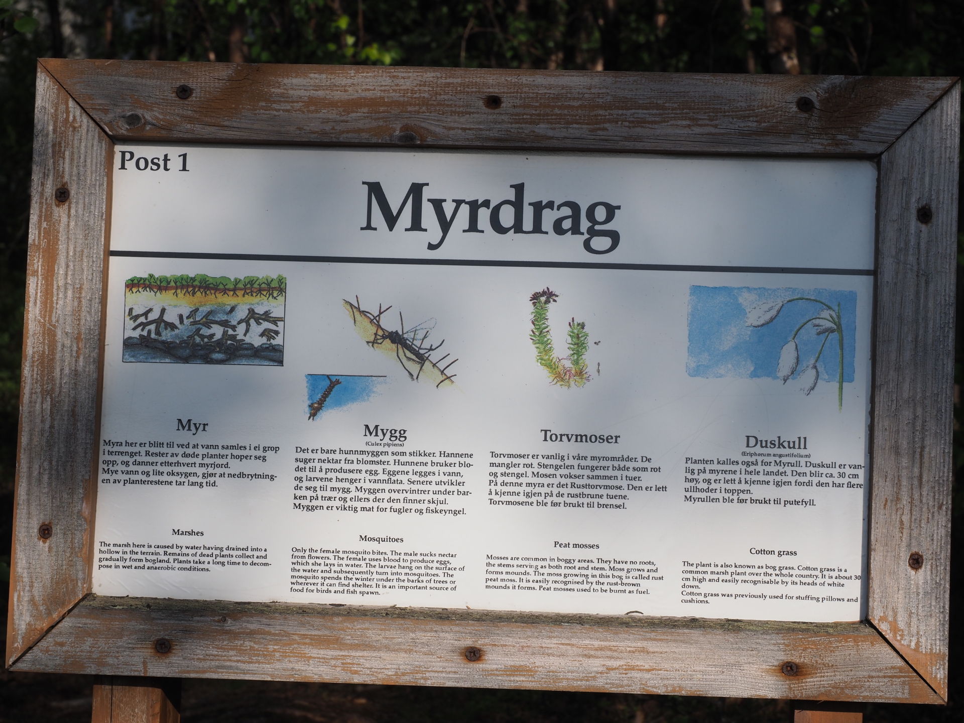 The trail passed through residential sections of Molde and past a historical museum before climbing into more natural environments along a stream. We saw our familiar Pinguicula vulgaris and also a Drosera species, as well as various early summer wildflowers. The regular forest birds were also evident.