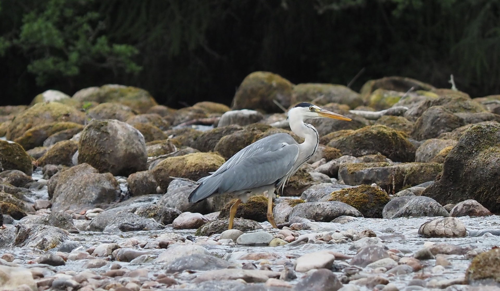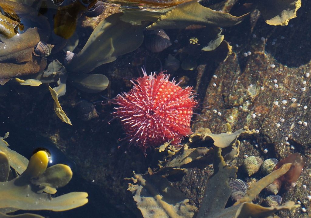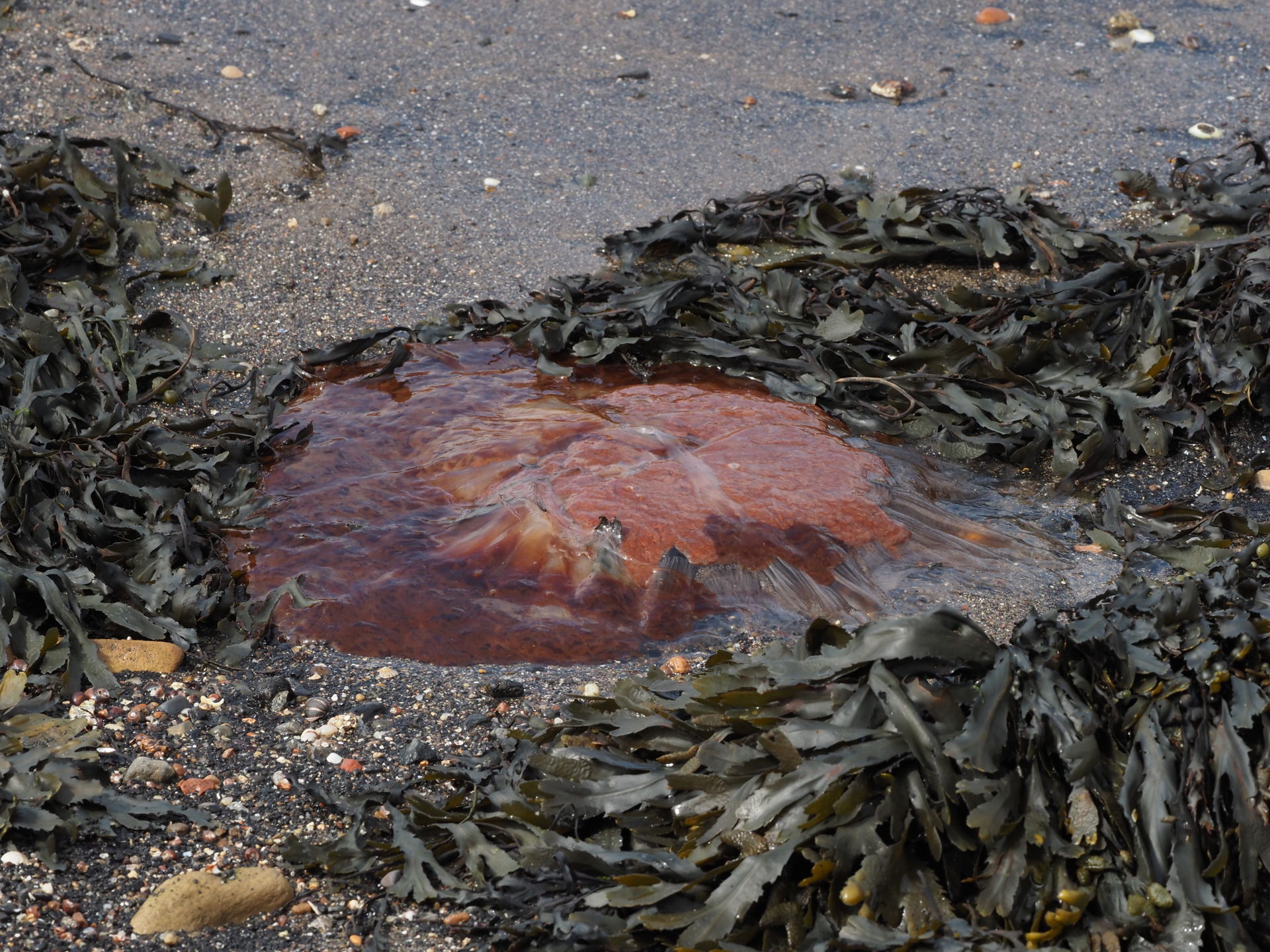 Once we took the train back to the station nearest the ship’s tender port, we had a leasurely walk through a nicely forested old railroad track that had been converted into a bicycle and walkway. Here was saw a variety of birds, including a new one for Rosario. We eventually (after a long flight of rustic steps) arrived at the shore area and spent time exploring the rocky shoreline – now that it was low tide. Various birds could be approached closely here, as well as large beached Lion’s Mane Jellyfish.