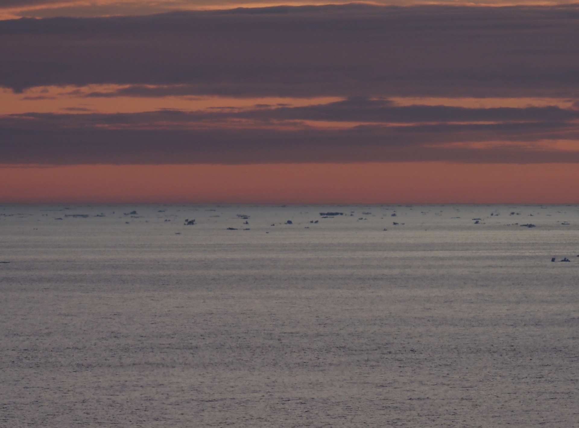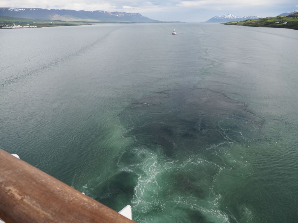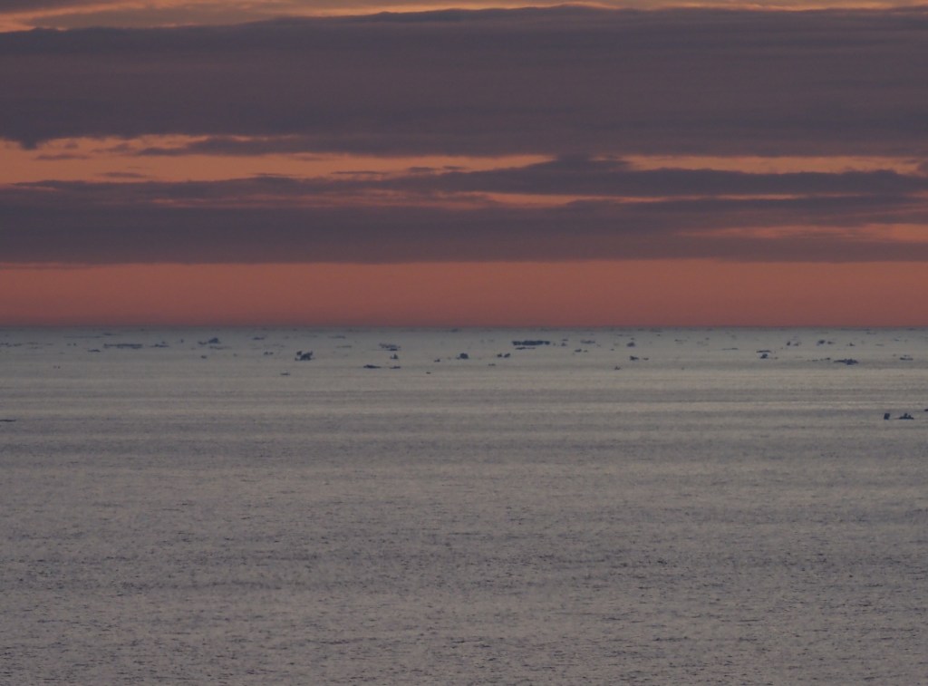 Finally, not to be outdone by the whales, floating sea ice was seen near midnight from the ship, a minor change in direction was needed by the ship to avoid denser sea ice concentrations on the way to Isafjordur. This isn’t common, but the east Greenland Sea-Ice edge was only about 50 miles away and sea ice can drift towards Iceland under suitable wind conditions.