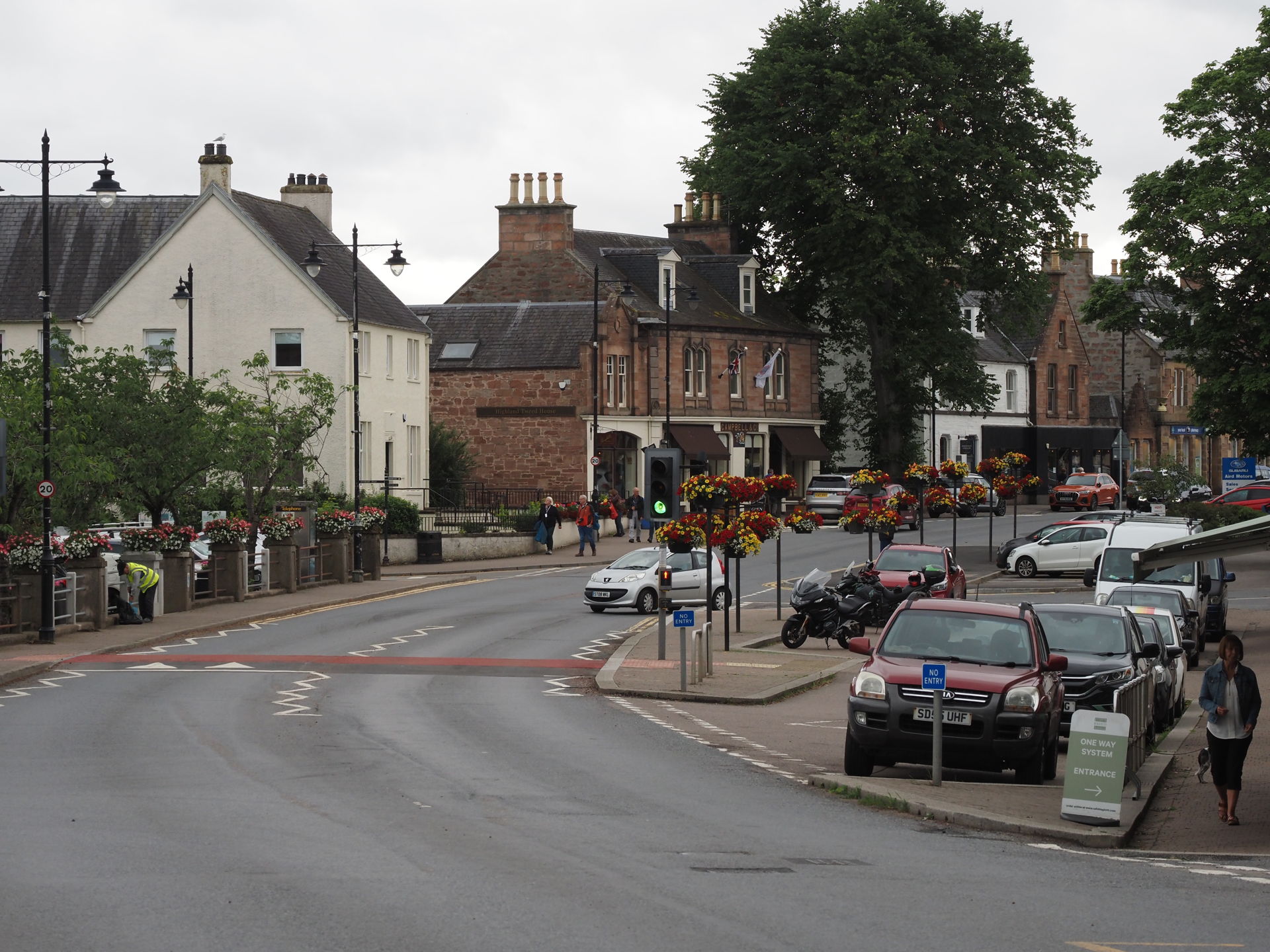 Our last port visit of the cruise was to Invergordon, a small town on the opposite side of a firth (estuary) from the main city of Inverness. It is about a half-hour bus ride to Inverness. We chose to take a tour that visited four locations. The first was Beauly, a small town along the way where we had just time for visiting an old cemetery, the second was a very quick roadside stop on a busy highway for photos of Loch Ness. Then we had more than an hour for a lunch break in downtown Inverness, and finally a longer visit to the Cawdor Castle outside of Inverness. During our lunch break we walked along the Ness River and saw a quieter part of the town where people go for walks. And at the Cawdor Castle we did the requisite visit to all of the rooms (relatively interesting) but enjoyed most the walk along a quiet trail among old growth trees in the “Wild Garden”. No one on our tour went there and it was very pleasant among the forest – admittedly planted with many non-native trees. There was a very large Giant Sequoia from California – the larger trees in this part of the garden must have been several hundred years old.