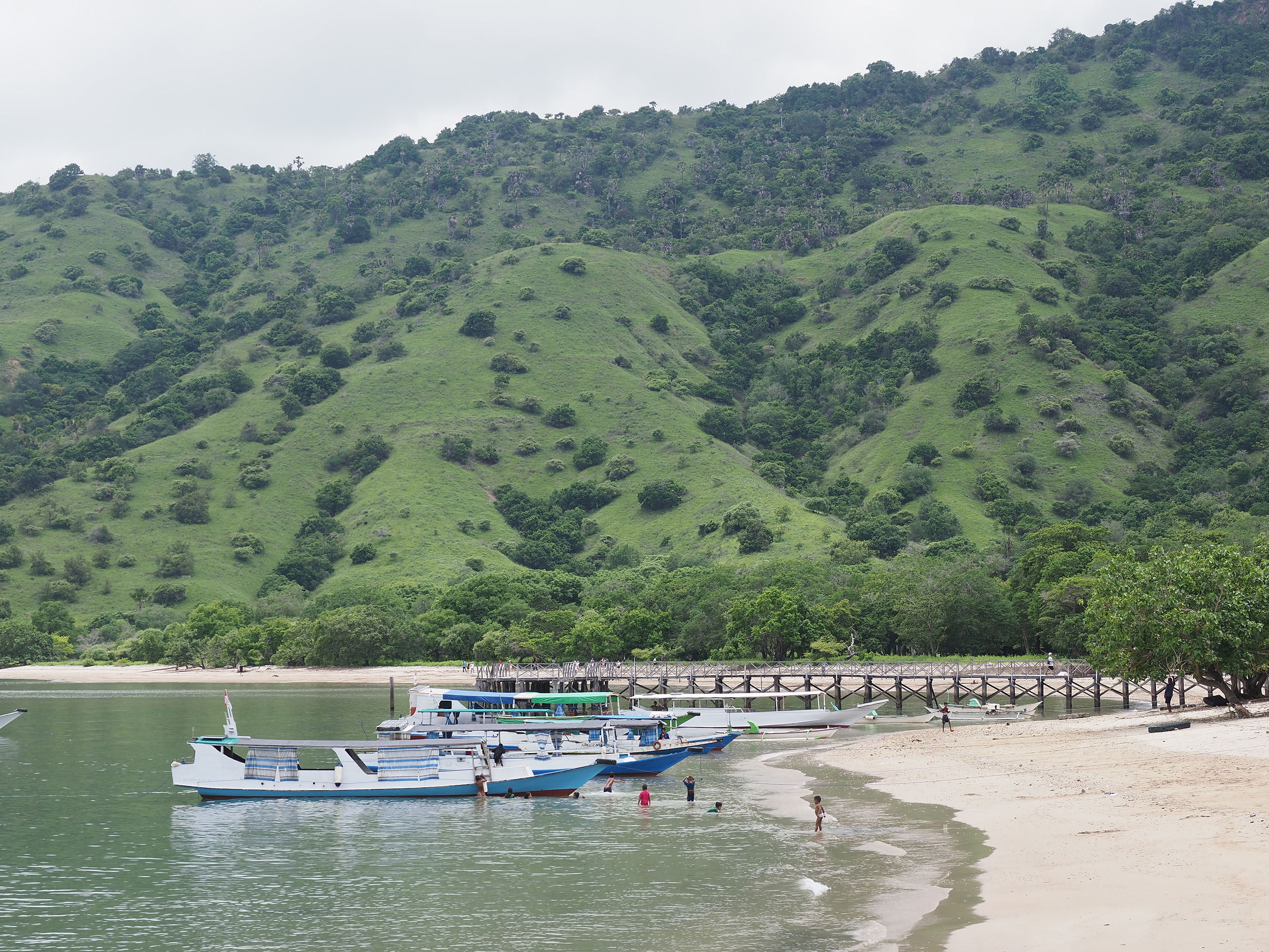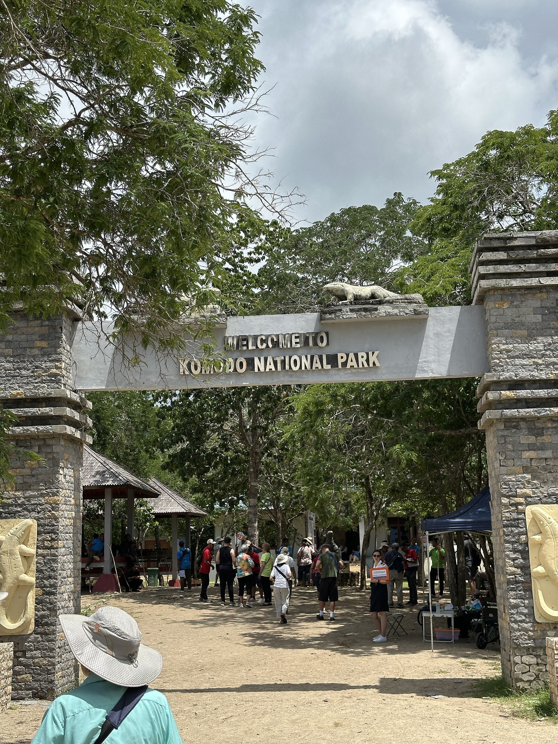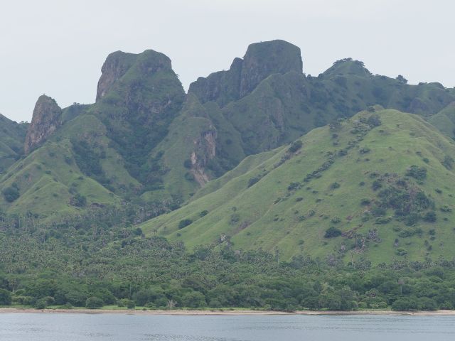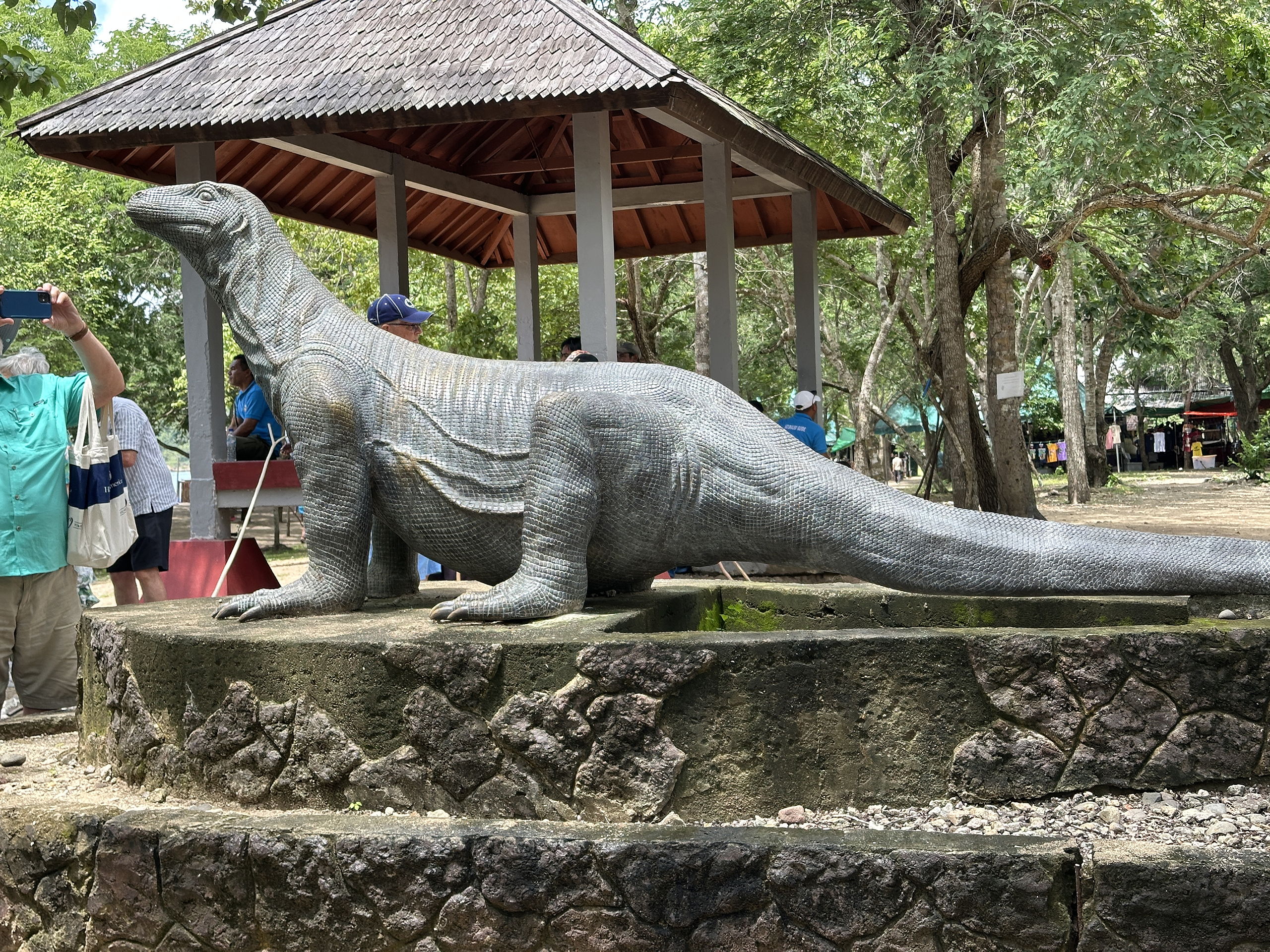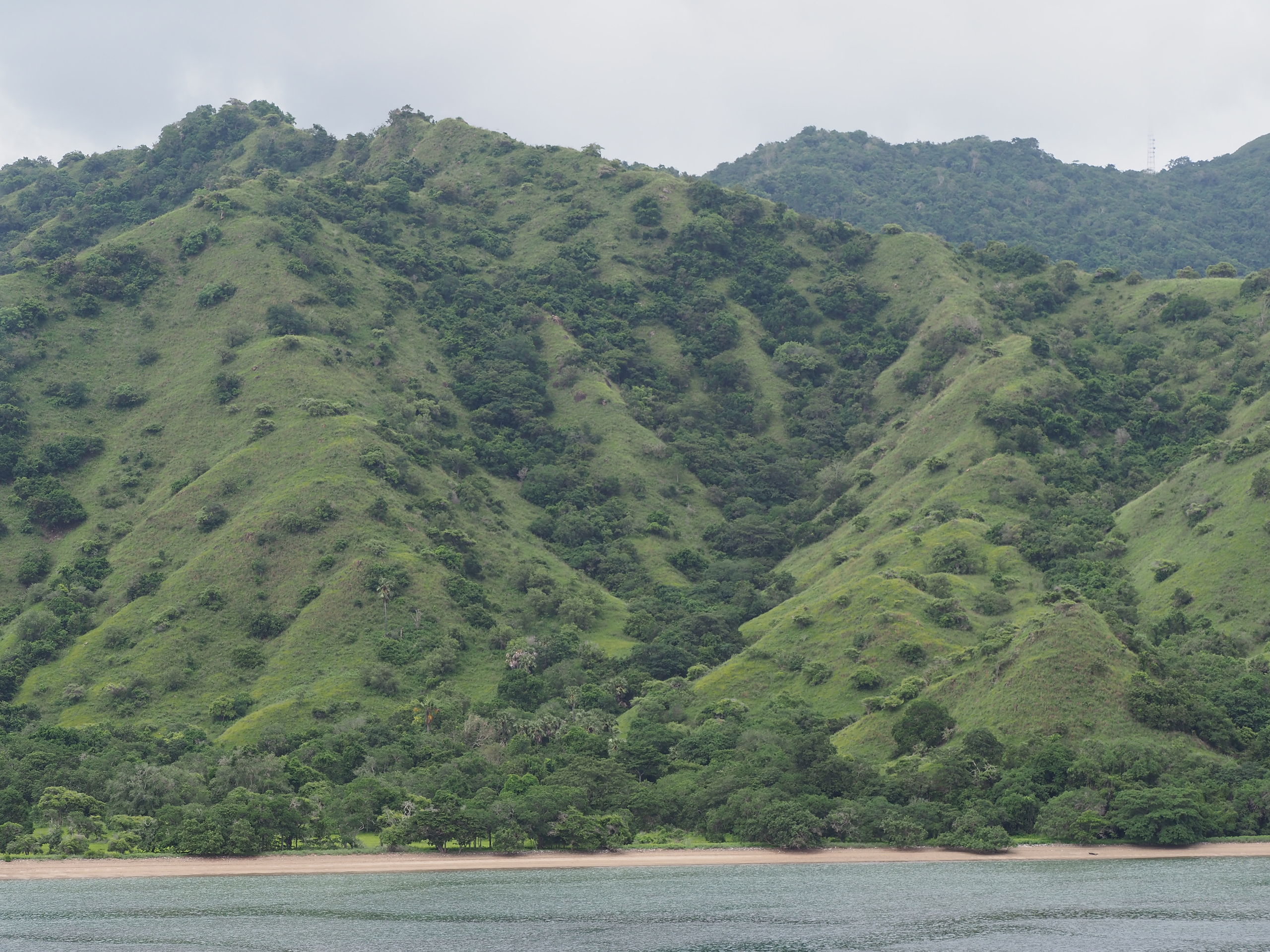 This island is obviously known for its Komodo Dragons, a species of lizard in the genus Varanus. There are other Varanus species that get nearly as large as the Komodo Dragon, and are much more widespread. Although regulations constantly change, one could not go ashore on Komodo unless you had a formal tour booked, hence we went with a tour offered by the ship. This amounted to a 2 hr walk through the forest to see the Dragons. Unfortunately, but probably for safety reasons, there was a leader and a guide at the end of our group – so you couldn’t really take extra time along the trail for much photography. Smaller Dragons were along the shore and around the tourist shops, through which you had to walk on the return to the dock.