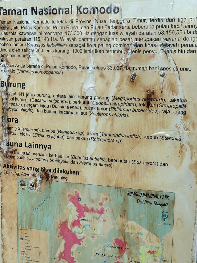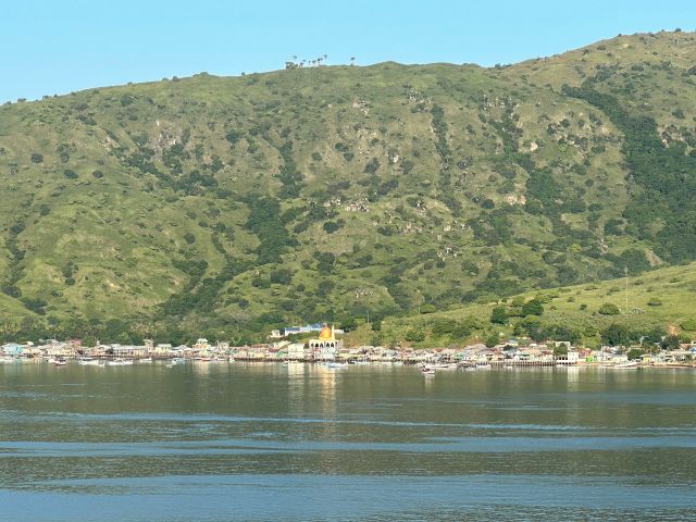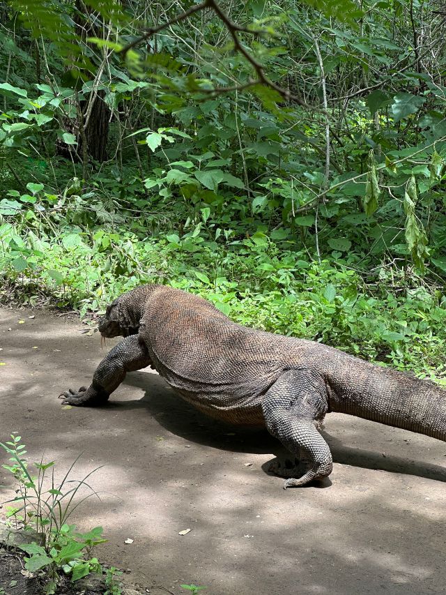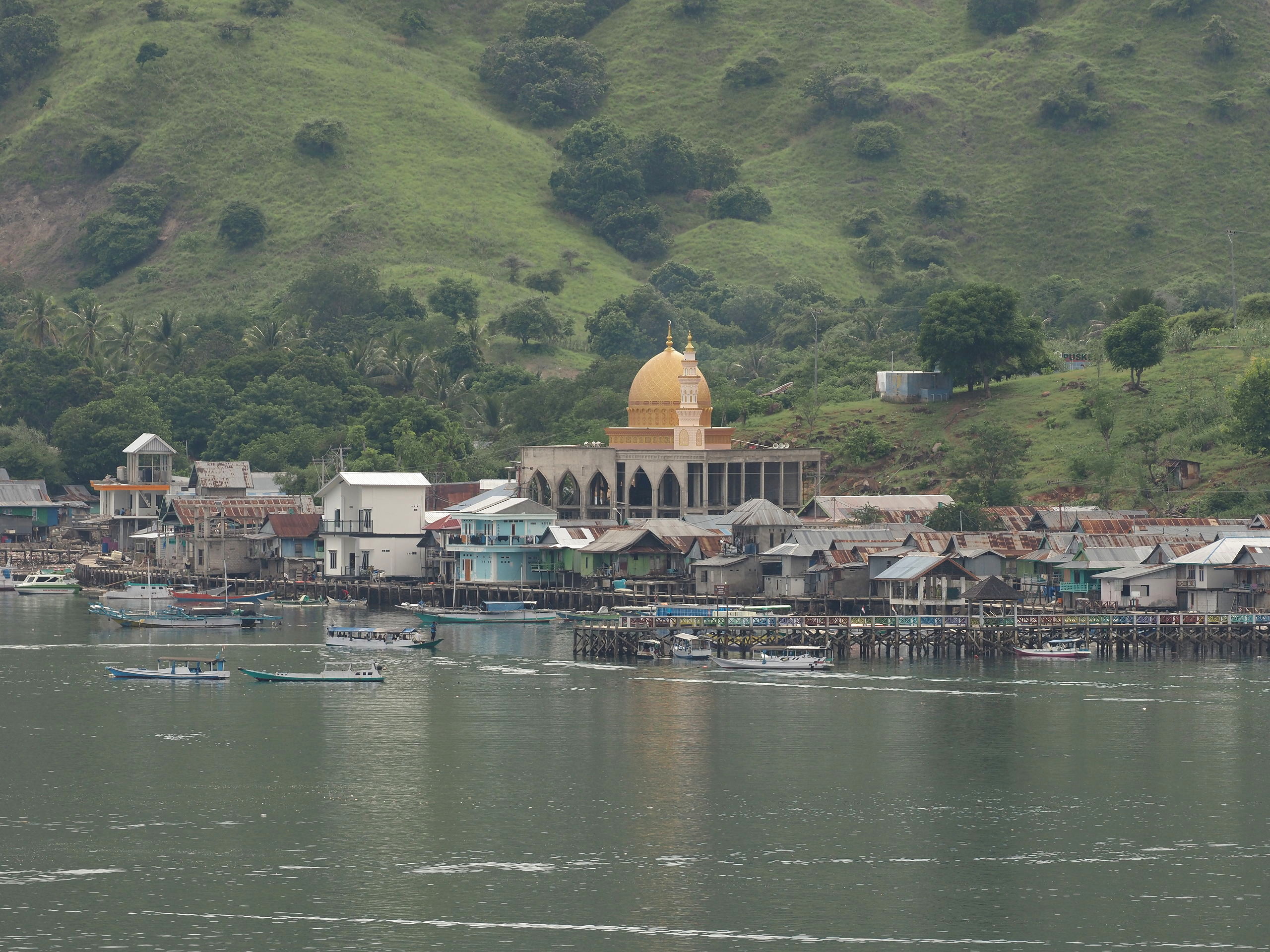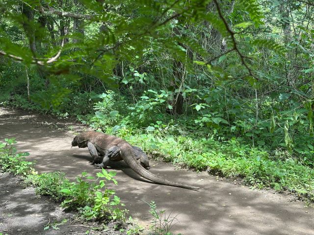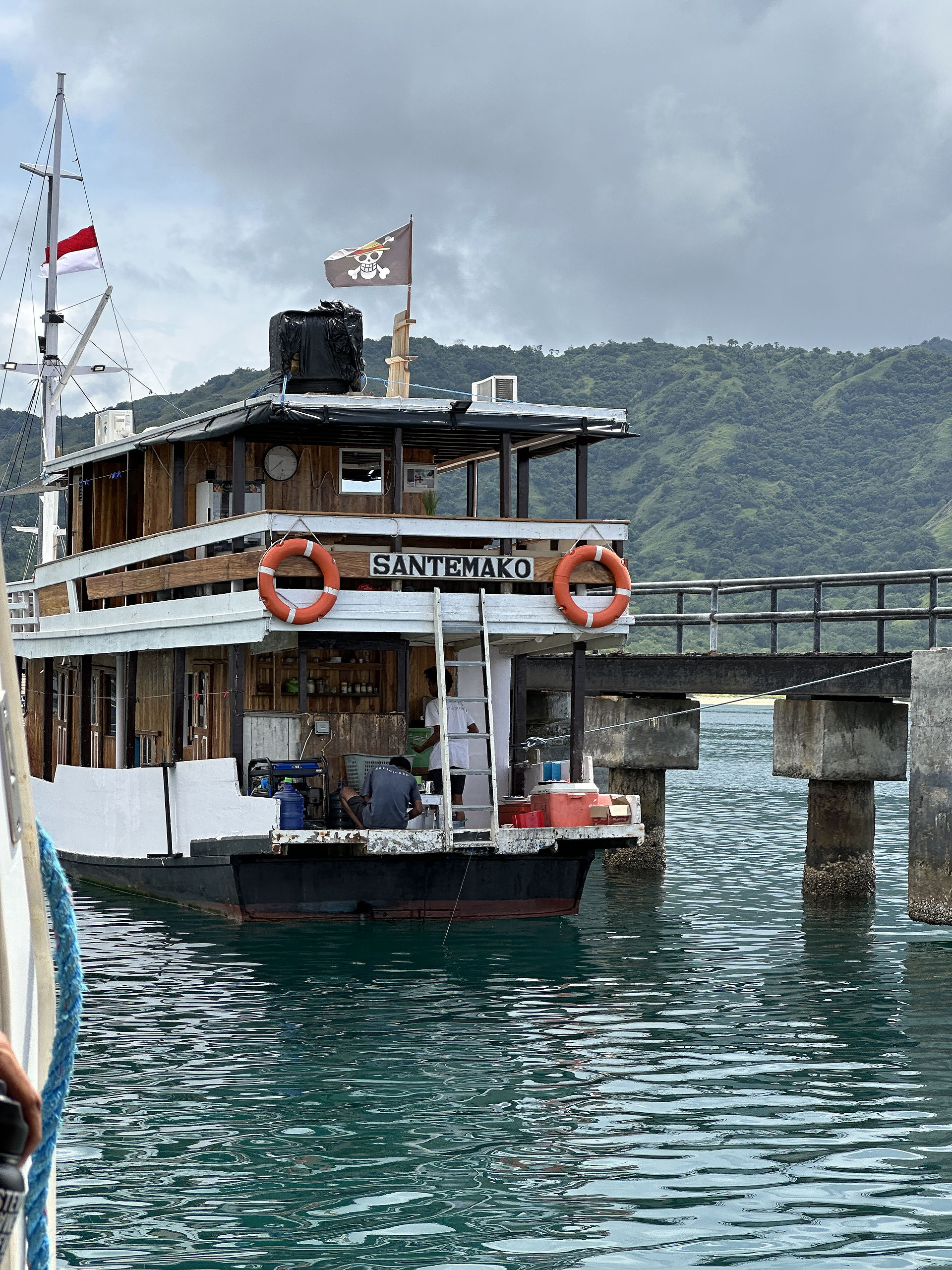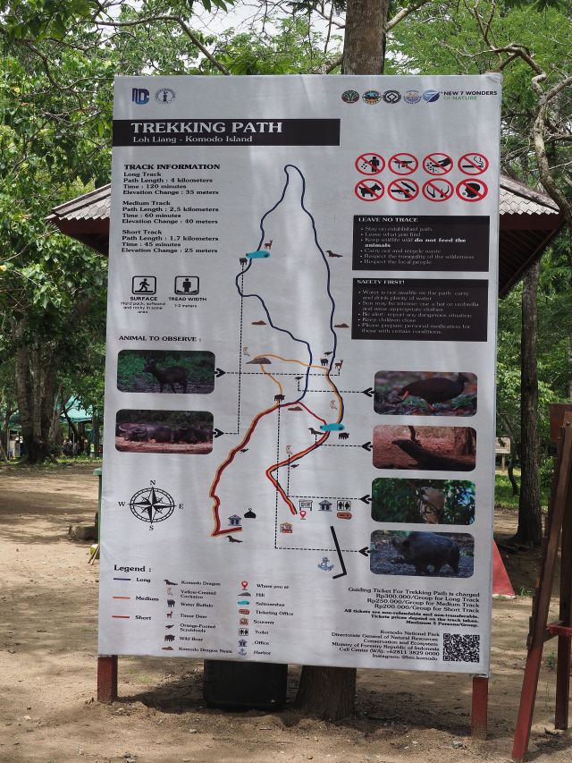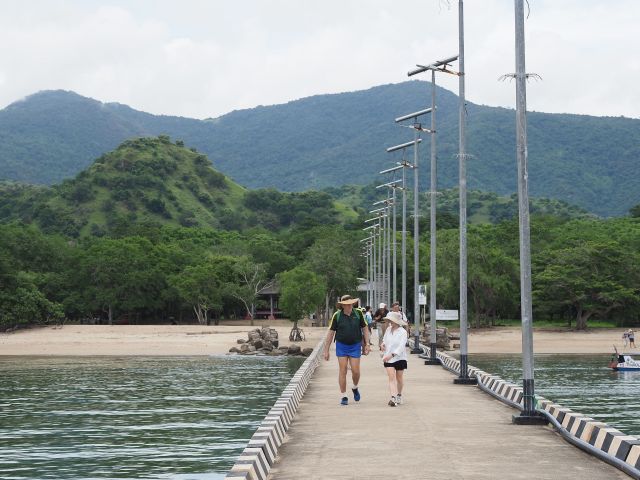 This island is obviously known for its Komodo Dragons, a species of lizard in the genus Varanus. There are other Varanus species that get nearly as large as the Komodo Dragon, and are much more widespread. Although regulations constantly change, one could not go ashore on Komodo unless you had a formal tour booked, hence we went with a tour offered by the ship. This amounted to a 2 hr walk through the forest to see the Dragons. Unfortunately, but probably for safety reasons, there was a leader and a guide at the end of our group – so you couldn’t really take extra time along the trail for much photography. Smaller Dragons were along the shore and around the tourist shops, through which you had to walk on the return to the dock.