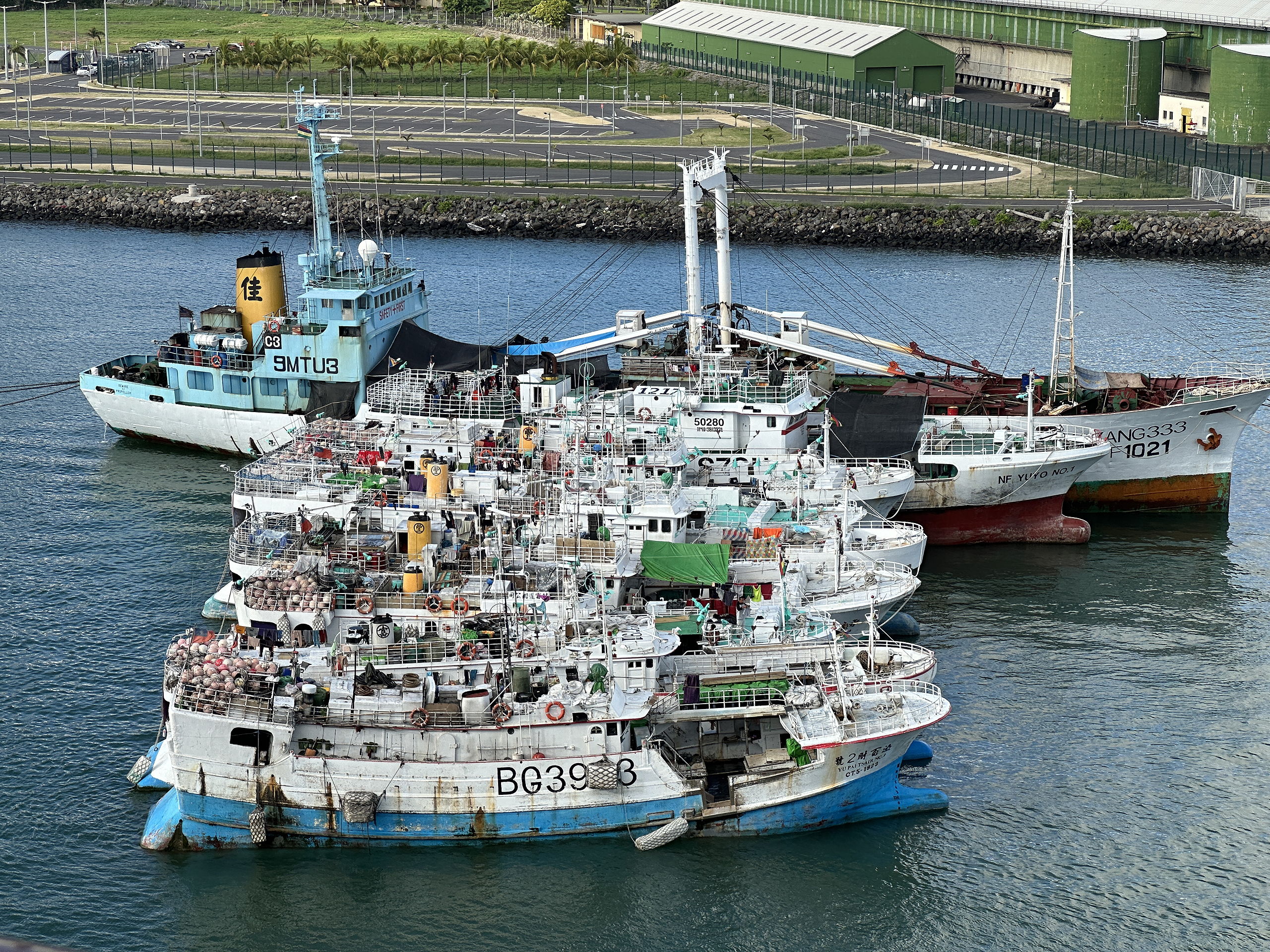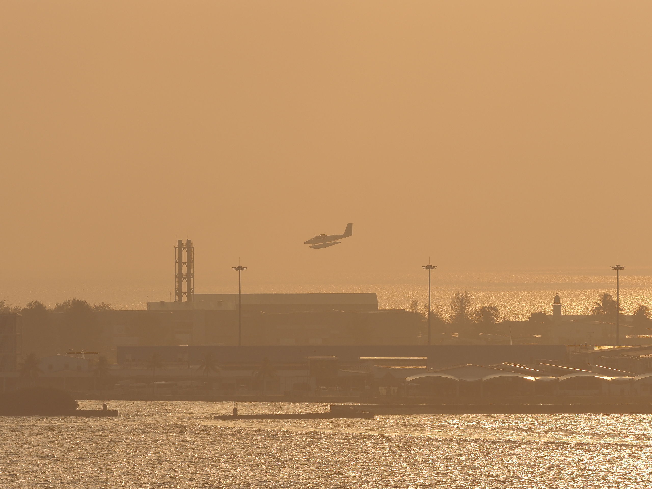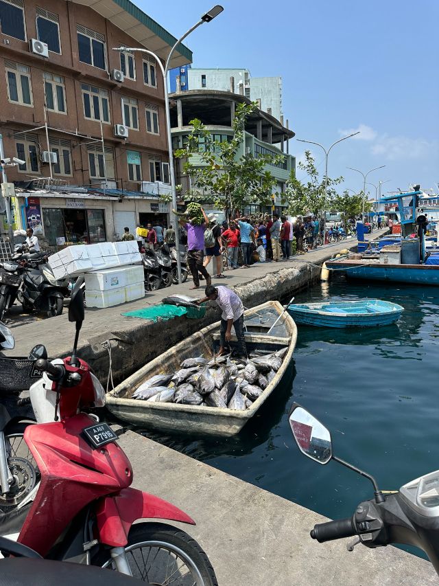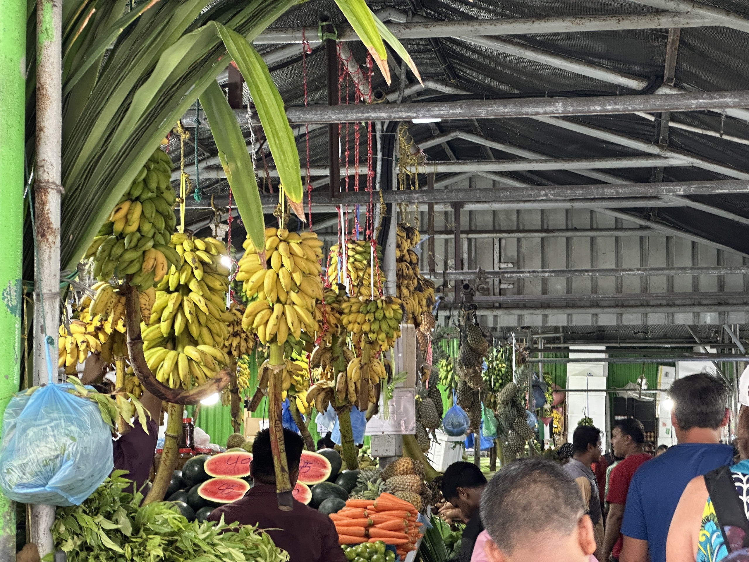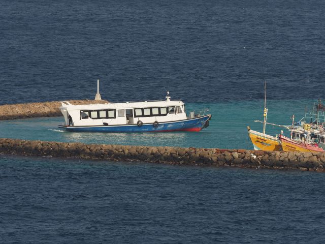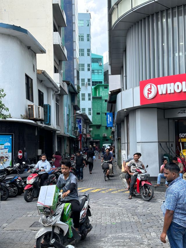 We tendered off the ship to the small port at the main town of Male, and didn’t go very far. There was a small city park with tall trees that had a few interesting birds and fruit bats hanging out. Also a somewhat interesting small market. But it was hot, humid, and we didn’t feel like going very far. And of course the island is only about 1 mile across, so you couldn’t go far if you wanted. Most tourists land at the airport and then immediately take a small seaplane to one of the 100+ resort islands. One resort per island. It looks awful on Google Earth – the amount of manipulation of the original atolls to satisfy tourism demands. Our course, the local workers don’t live in the resorts – see the photo of the large high rise apartments below.