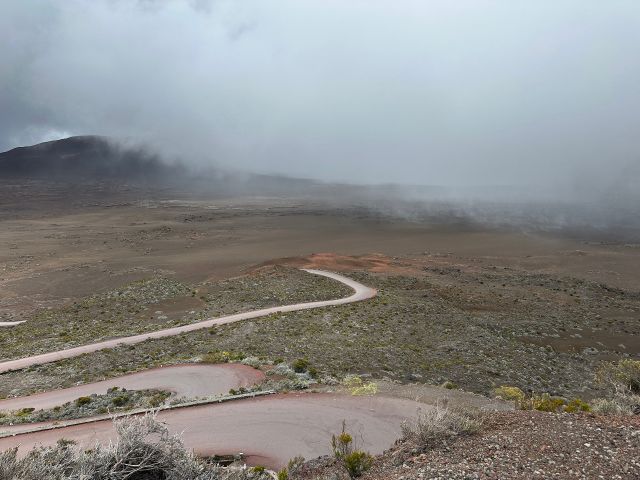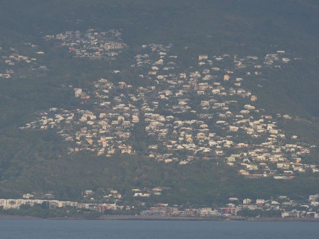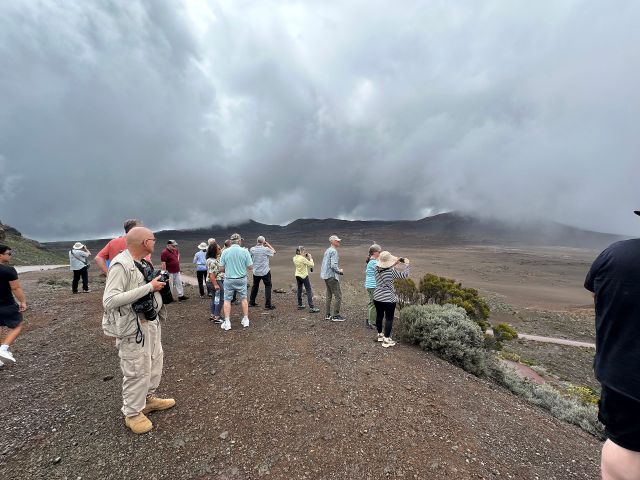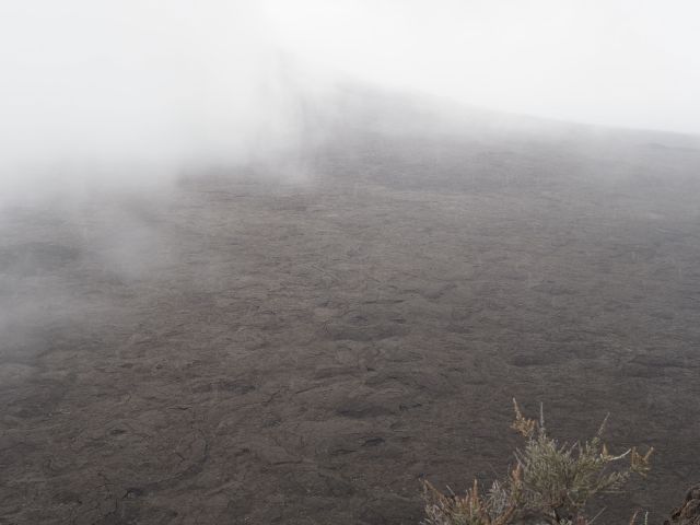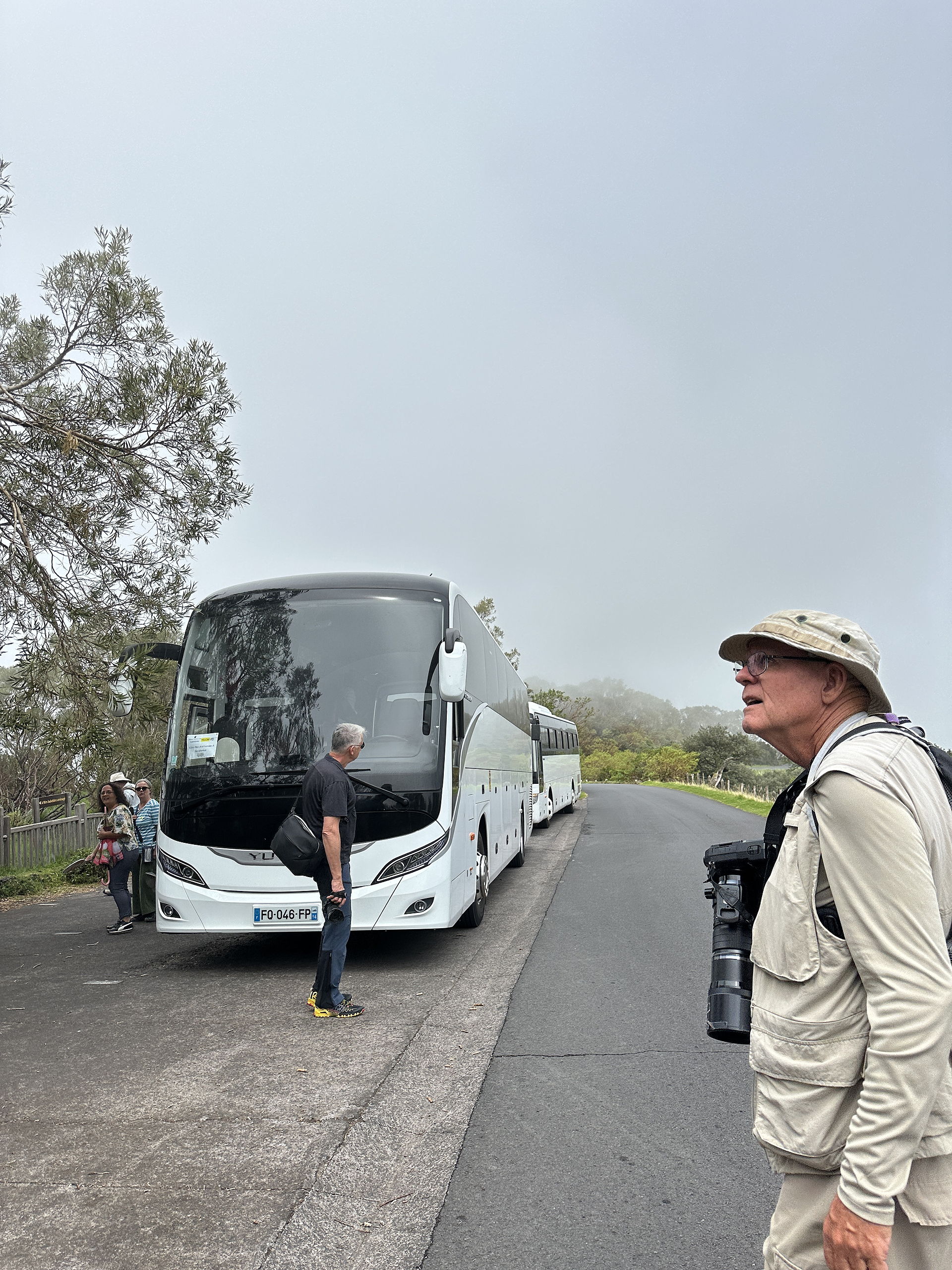 We took a long excursion on Reunion to see the active volcanic crater, Piton de la Fournaise at about 7000 ft elevation. As expected (by me at least) it was cloudy and we only had glimpses of part of the volcanic features. Rosario did see two endemic birds up there (the only two endemics) on Reunion. And the short time we had with native vegetation was interesting – most tropical islands are heavily disturbed by humans and cultivation closer to the coasts and at lower elevations. Reunion, like Hawaii, has its most natural landscapes high up.