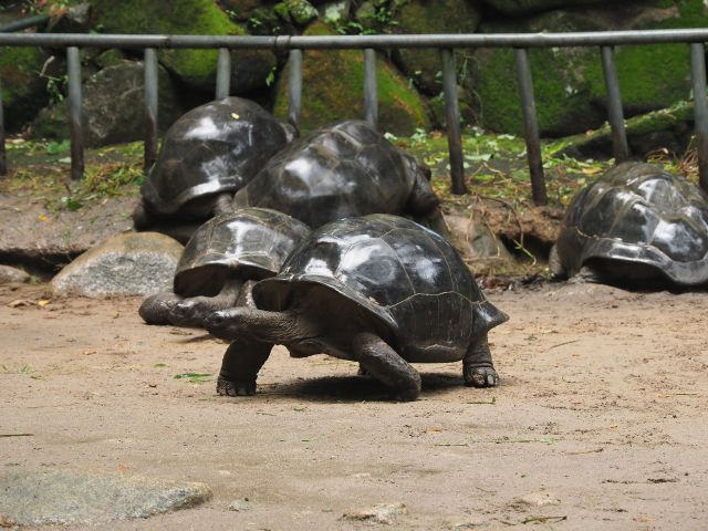 We didn’t have enough time in the Seychelles, in part because of the ship’s port schedule and in part because it rained and made it inconvenient to walk around. Taxi’s were expensive ($10 for less than 1 mile to the Botanic Garden) as were other items, so we spent some time seeing the botanic garden – that also had lots of the giant Aldabra tortoises. But it wasn’t feasible to get to any natural landscapes or trails higher on the hills.