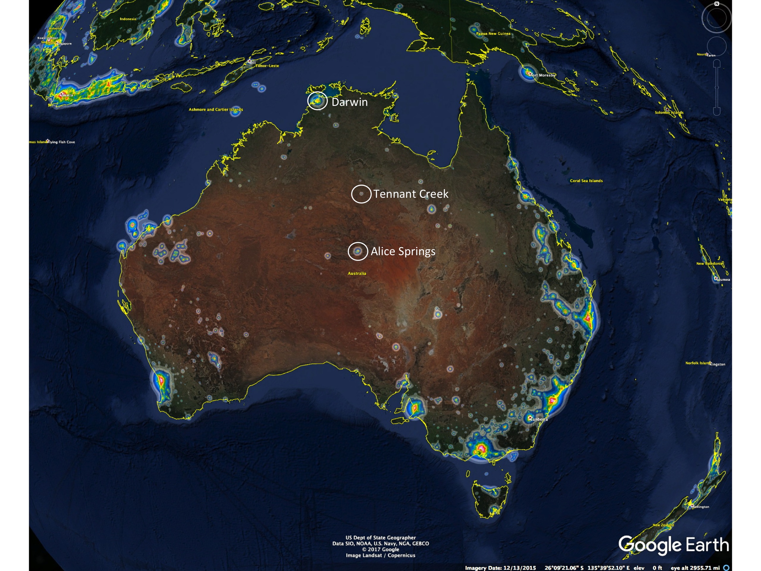 Darwin, Tennant Creek and Alice Springs locations ← Previous Next → Locations of th ethree stations shown in the next three slides. Like Loading...