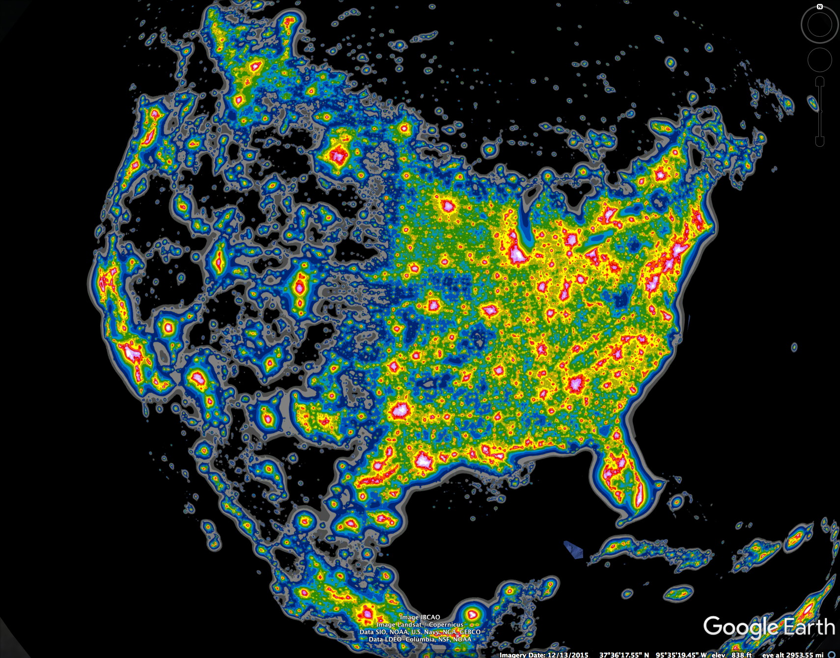 Screen Shot 2018-01-10 at 3.10.07 PM ← Previous Next → Same as European light pollution but for North America – at same scale. Eastern US has few dark sky areas, unlike western US. Like Loading...