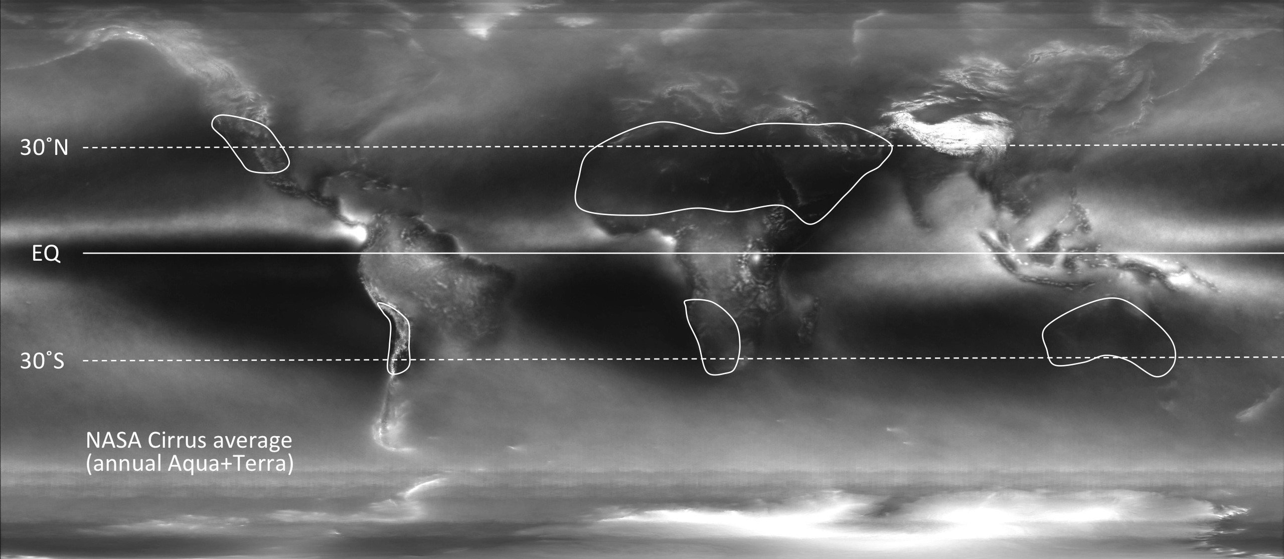 NASA CIRRUS CLOUD AVERAGE ← Previous Next → This is a NASA cirrus cloud product, showing where high (cirrus) clouds are most frequent. These can be thin, but important for some observations. Like Loading...