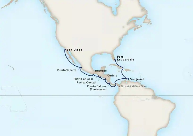 There are many cruises that pass along the Pacific coast of Central America, often going through the Panama Canal. We select one here as an example of the material that would be relevant to the cruise.