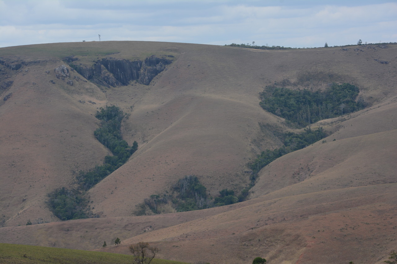 The areas surrounding the forest tract are grasslands, with the nearest comparable tract of forest about 50 miles away. Some claim the forest was more widespread in the past and now only patches remain, yet the cloud climatology of Madagascar that Mike has been working on does not appear to support that theory. Persistent cloudiness is found in certain areas within the preserve but not in the adjacent grassland areas. After a smooth and pleasant drive on a paved road we arrived at the Ambohitantely Special Reserve by early afternoon. Once we left Tana the towns became fewer and near the turn towards the Reserve we did not encounter many villages or people. Grass-covered hills were evident all along the route.
