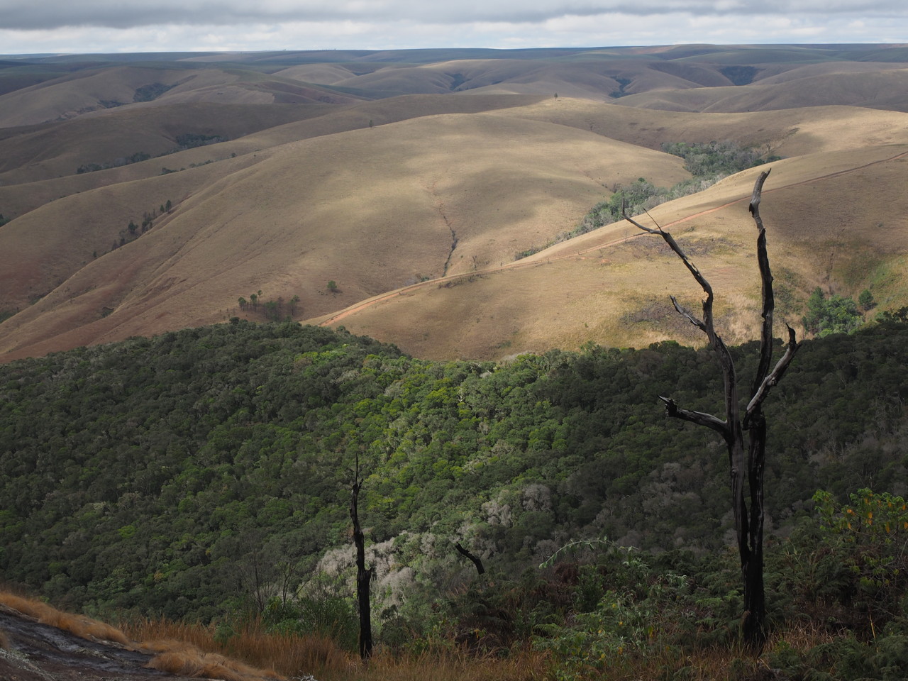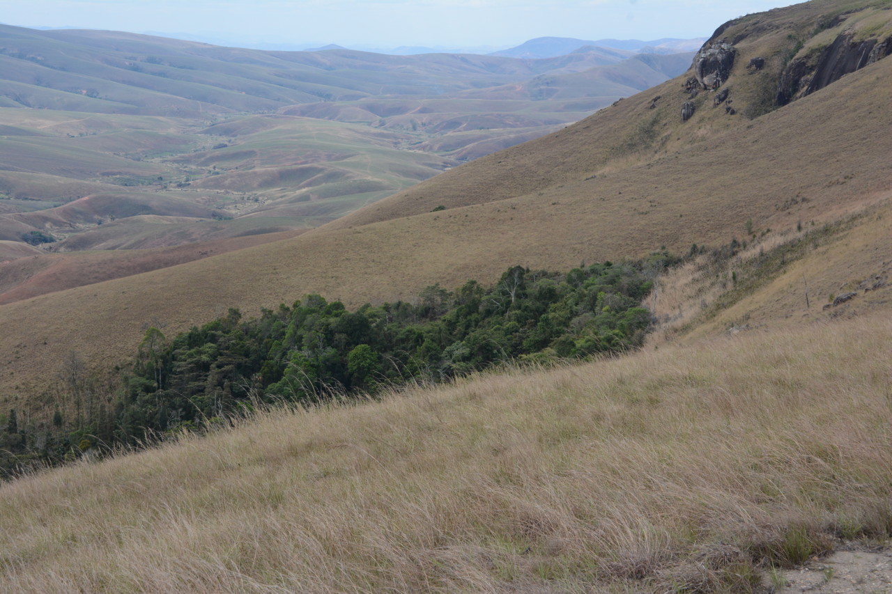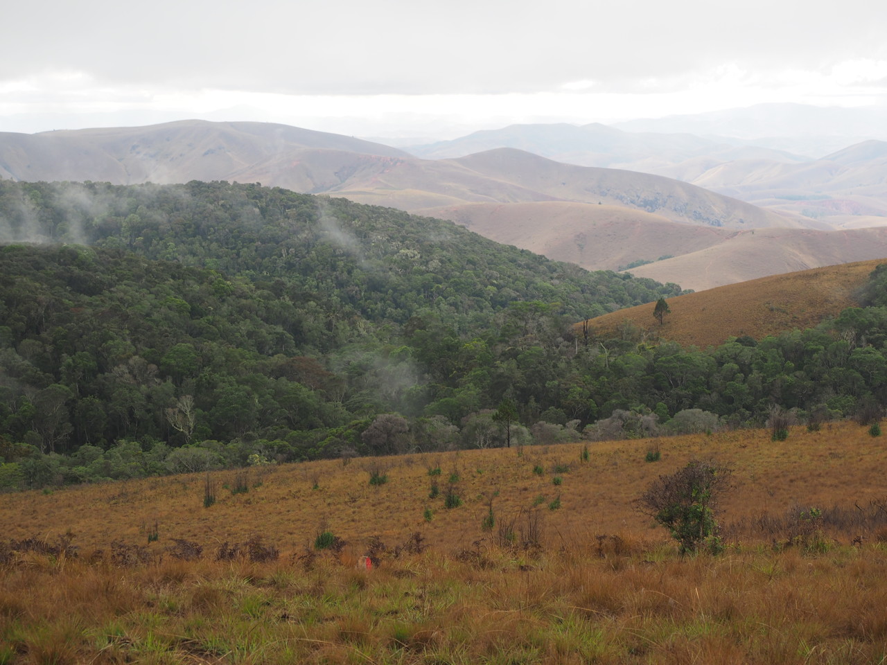 Our guide Yvonne and the driver picked us up at the hotel early that morning and after a short stop at the nearby supermarket we were headed for the Ambohitantely Special Reserve. This reserve is about 3 hours north and a bit higher (5200 ft) than Tana (which is about 4100 ft). Mike was interested in visiting the main 5-mile long forest patch in the reserve because 1) it contained a rare palm 2) it was not commonly visited by tourists and most importantly 3) because it appeared as an isolated area of frequent cloudiness in satellite cloud climatology data and he wanted to see whether it was an isolated remnant of a former widespread forest or if it had always been isolated due to the peculiarities of the local topography.