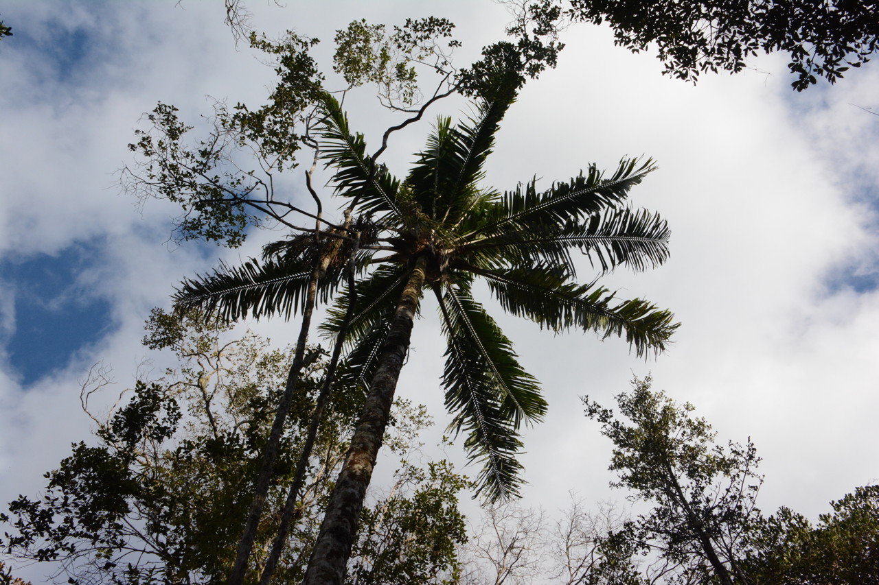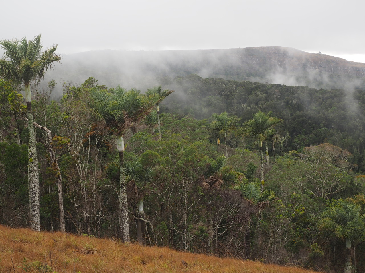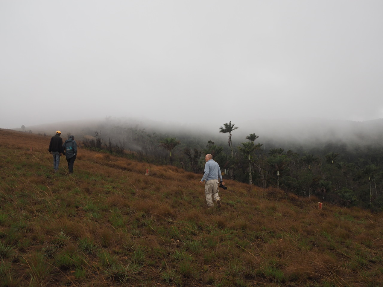 22. Getting closer to the palms (Dypsis decipiens) and the edge of the forest on this cool morning. Clouds were forming as the air ascended from the valley. Beyond the crest of the hill towards the west, the sky was mostly clear.