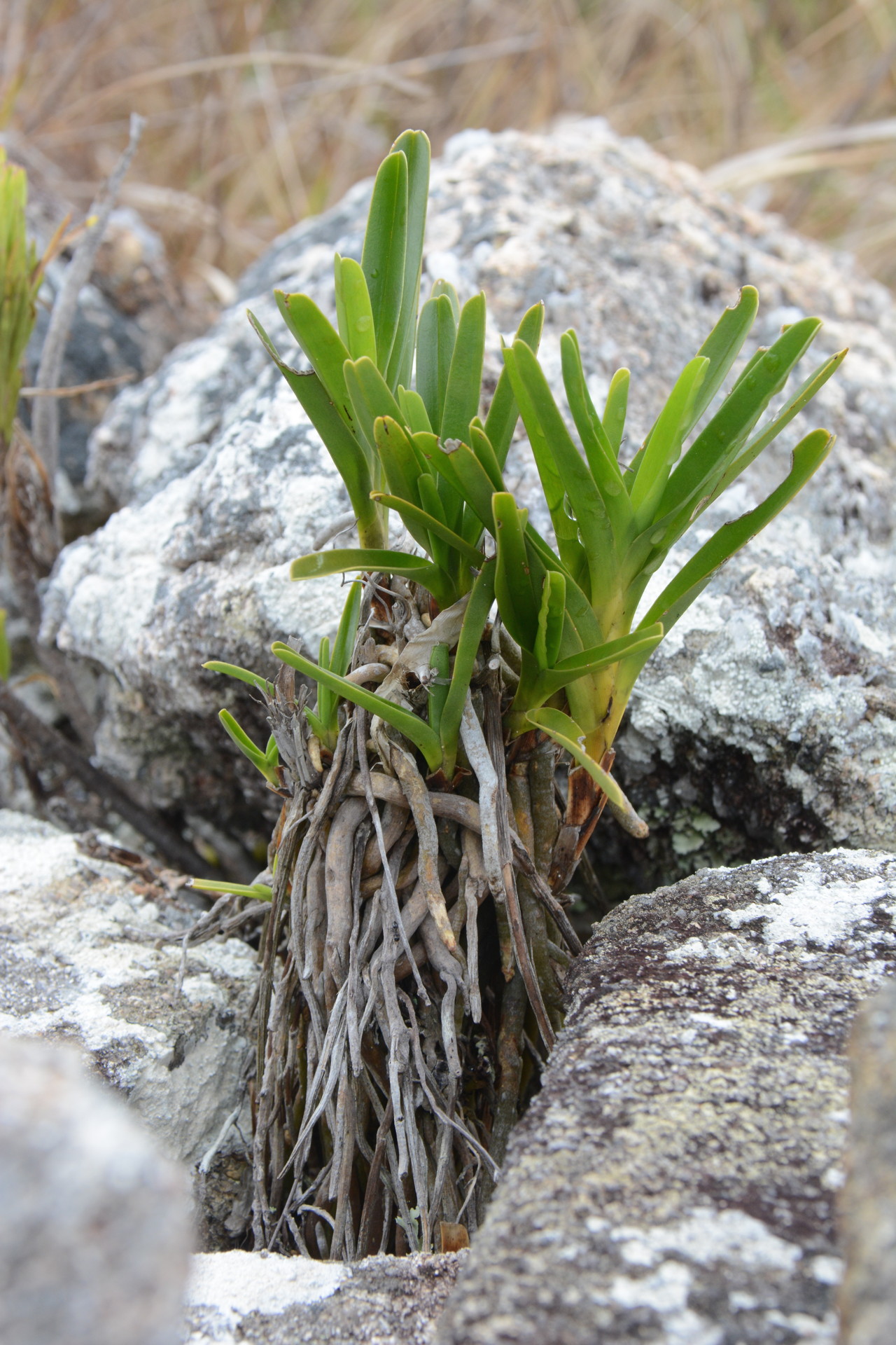 34. Lithophytic orchids were fairly tall and numerous in this rocky outcrop called the “orchid garden”. Note also the small aloes.