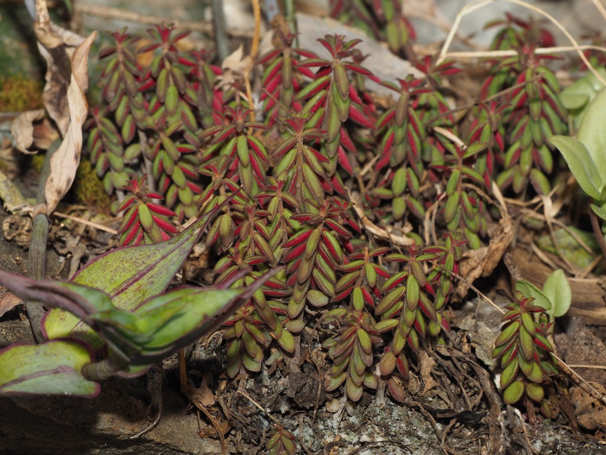 Flash photo of a colorful Peperomia.