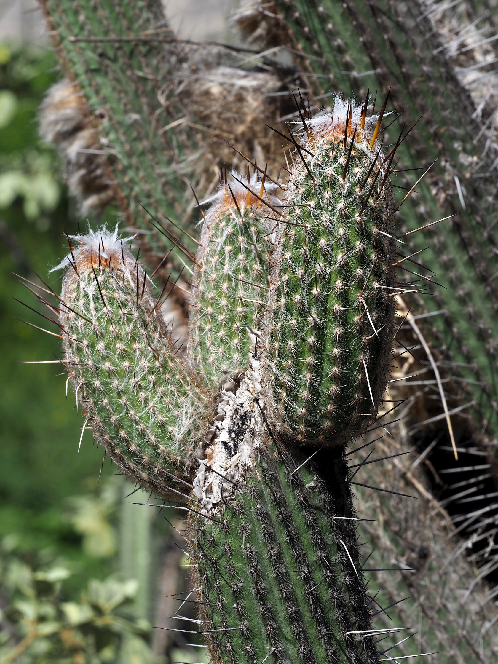 An Espostoa stem that has been cut and is regrowing three stems.