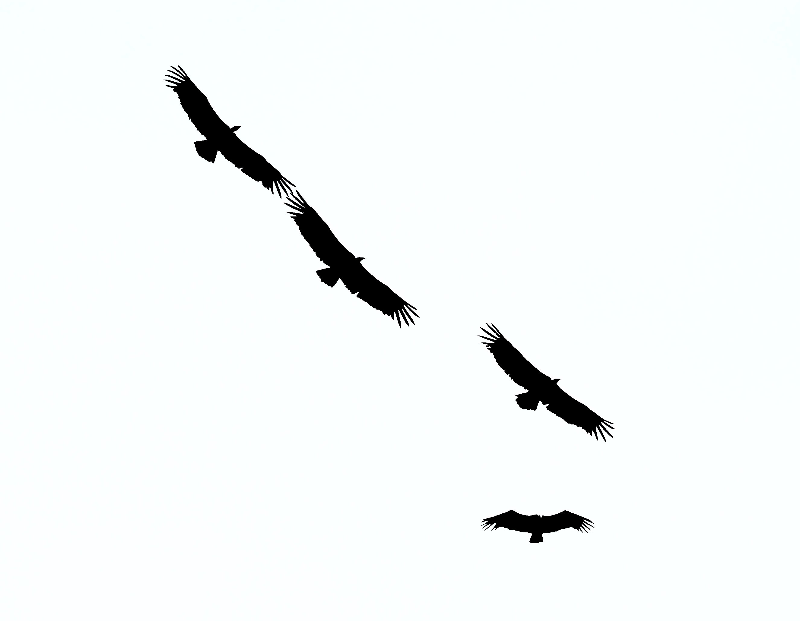 The silhouettes shown here are made by converting the original color images to grayscale, and then manipulating the histograms to increase the contrast. Some images are not strictly silhouettes – they are grayscale images with high contrast. Many different image manipulation applications (here Aperture or Graphic Converter have been used) can be used produce similar results. Of course, some subjects lend themselves better to silhouettes – birds flying against a bright sky or trees with the sun behind them.