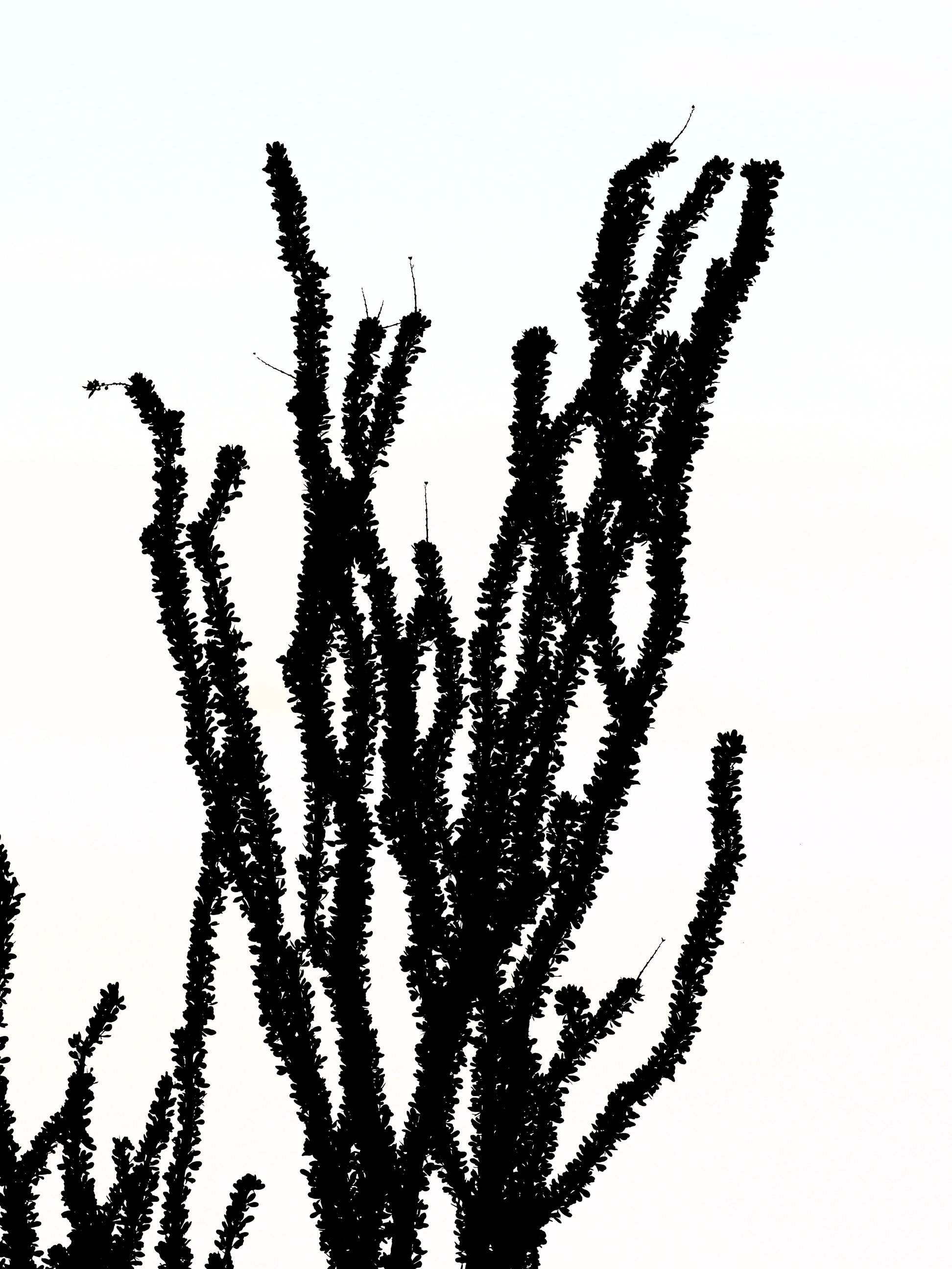 Silhouettes are valuable because often a subject is seen backlit – and appears mostly as a silhouette. This is common in birding, where one is often looking up towards a bird in the canopy against a bright sky. But it can also be true for mammals or trees in the distance. For plants, the silhouette emphasizes the growth form (habit) of the plant – this can be an important characteristic for identification.