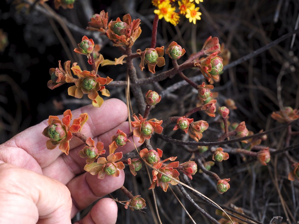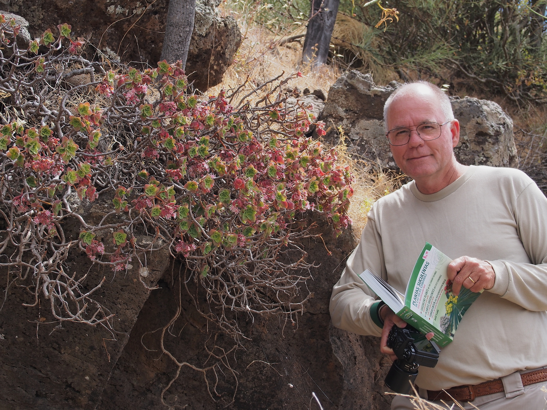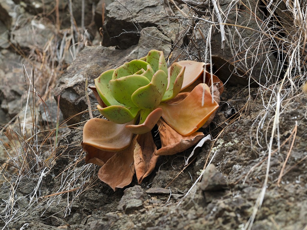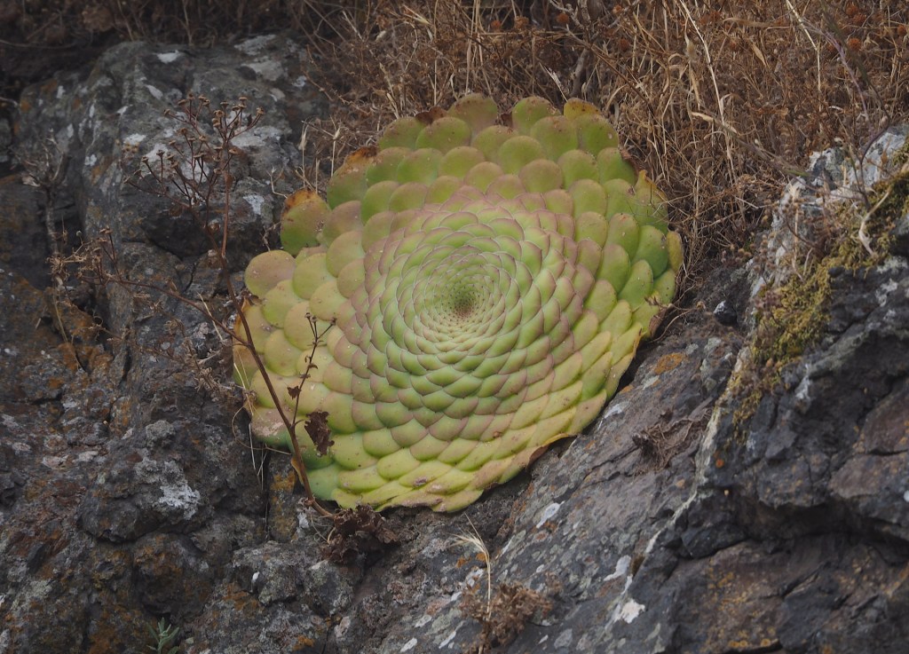 Although Aeonium species are the main attraction to “succulentophiles”, there are many other succulents found on the islands, and the only really suitable guidebook that covers them is that by Joel Lode, Plantas Suculentas de las Islas Canarias. Unfortunately, this book, published in 2010 with the help of the Canary Island’s Government, is now out-of-print. Perhaps the reader can find it somewhere. (Note added June 2021: a pdf version of the book can be purchased from Joel Lode’s website.) Inaturalist will have most of the species, though it might be less useful in the field. In any event, although we found the book absolutely essential to identifying most succulents in the field, there were many cases where the plants didn’t look exactly like those in the book. This is normal, as most plants look different depending on the sunlight exposure they receive and the amount of water they get.