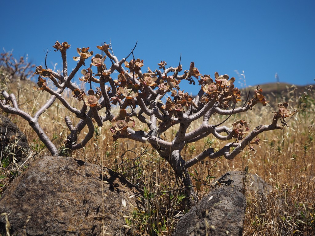 There are may other succulent plants in the Canary Island landscape, and unfortunately, not all are native to the islands. Since the islands were a repository for plants being brought from the Americas for a long time, many have since become naturalized. Century plants (Agave species) and Prickly Pear cactus (Opuntia species) are widespread in many parts of the islands – and can be the most widespread and dominant succulents in some habitats. In fact, for many photos we had to work hard to avoid getting such plants in the pictures.