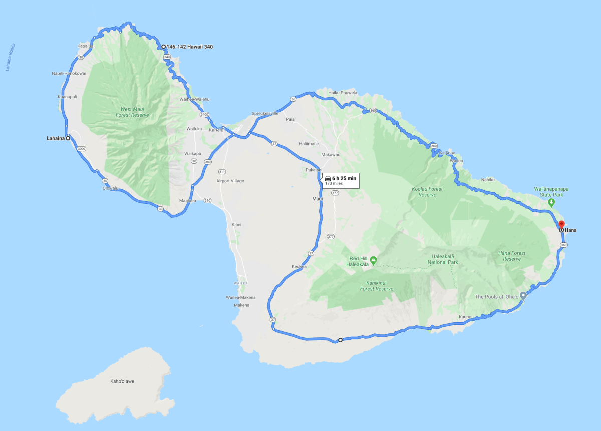Screen Shot 2020-07-27 at 8.46.23 PM ← Previous Next → Although very few tourists drive this route around Maui, it is the most complete circumnavigation of the island. It takes (according to Google) about 6 and a half hours – average speed is less than 30 mph! Like Loading...