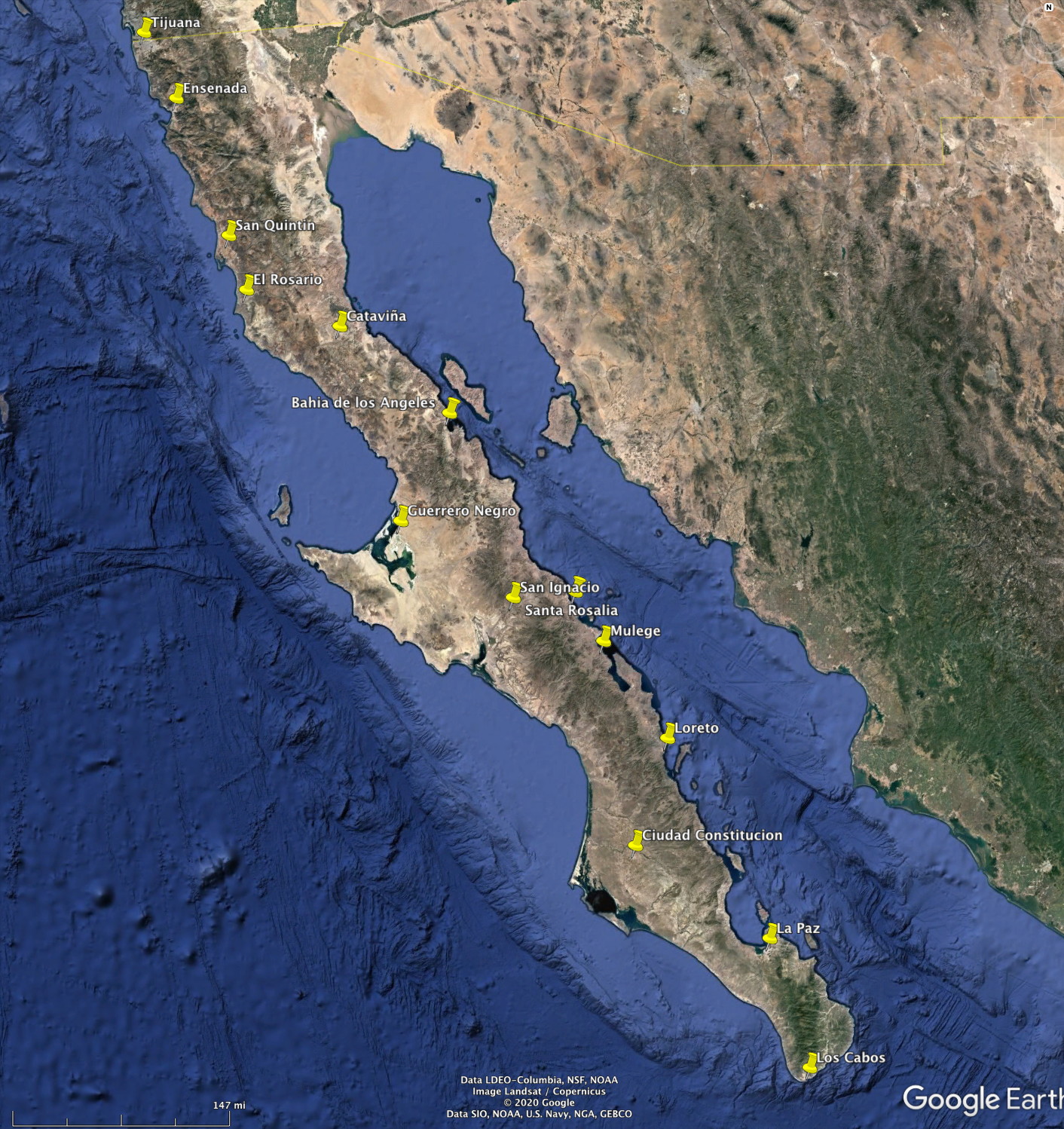 Assuming you fly into Los Cabos, at the southern end of the peninsula, you are then faced with the option of how far to travel north to see “everything of interest”. The farther you drive north, the longer the return drive to Los Cabos. If you decide to travel to Tijuana to take a return flight home, you must make a one-way vehicle rental. These are considerably more expensive that returning rental vehicles at your pick-up location. If your available time is limited and you don’t want to drive an extra 1000 miles, a one-way rental is the best option. If your time is less constrained, driving the peninsula both ways is a viable option.