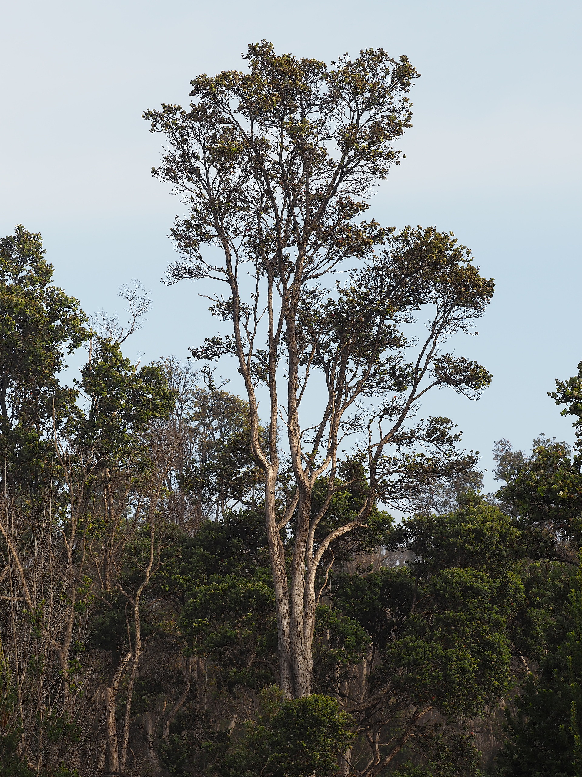 Another widespread tree species is Acacia koa, whose leaves closely resemble those of Eucalyptus to those not familiar with the endemic Hawaiian Koa. Eucalyptus are widely planted in Hawaii and we were at first unsure of whether Koa was just another Eucalyptus – we suspect most visitors will not be able to make the distinction.